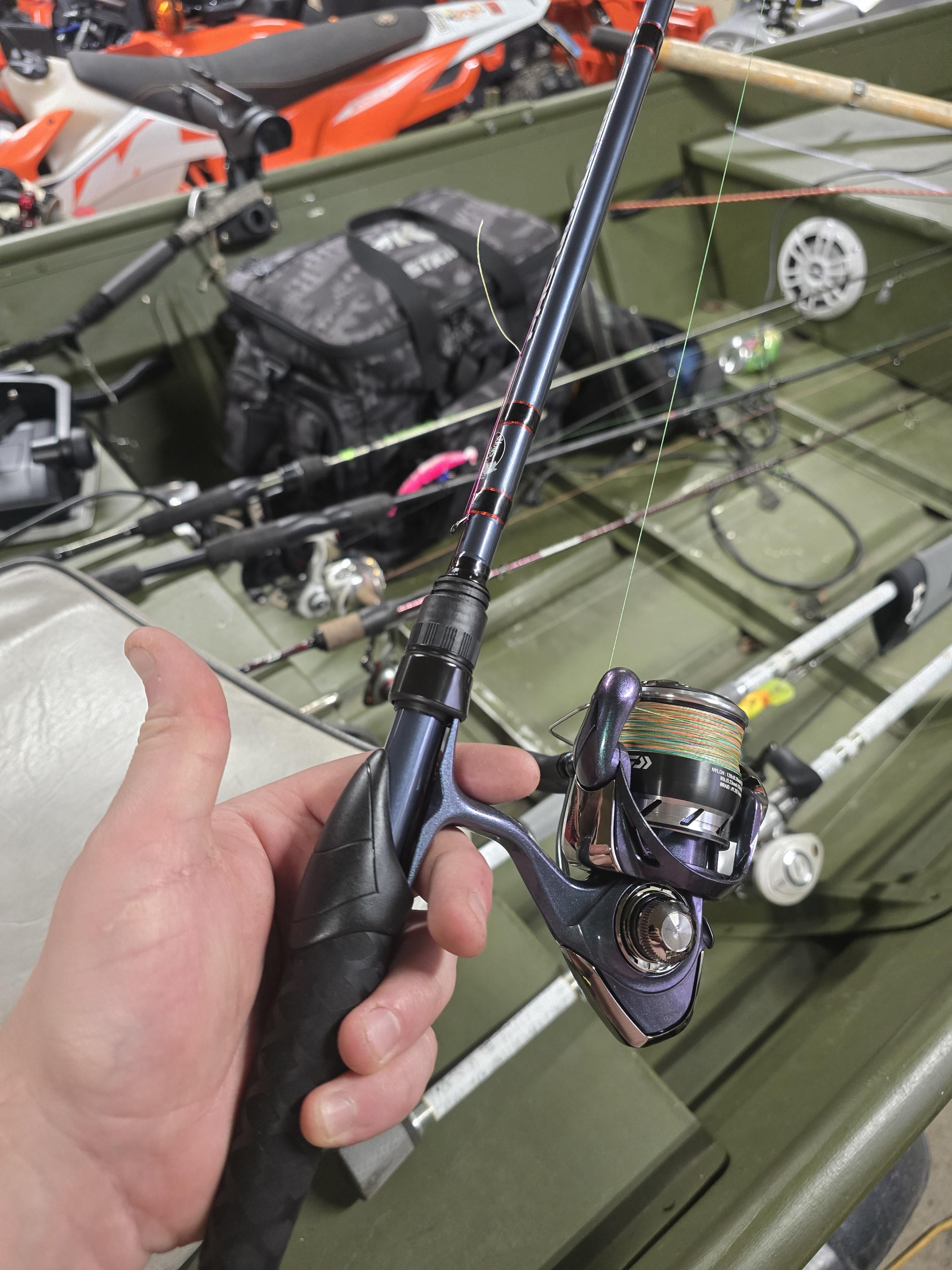 daiwa regal lt 2500 on a bps pro tournament medium 7ft. everything is ice currently so had to get something new lol Posted by LeFishTits