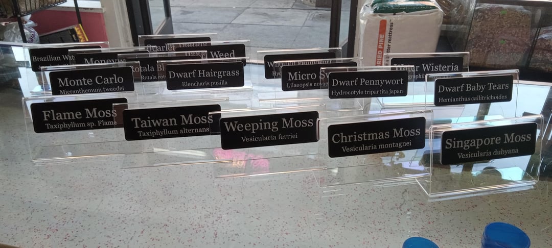 Been trying to figure out a way to label my plants better, because a lot of people don't know what is what when there are multiple plant in a tank. I came up with this idea, I ordered the Acrylic place holders, and used super glue to attach the name plates I had engraved. What do you guys think?