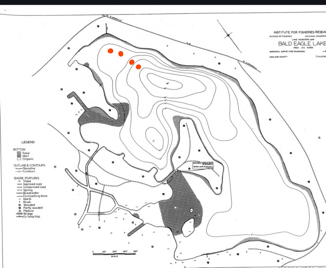 Yesterday i fished basin edge 8 fow out to 20. Nothing but bluegill, any suggetions on a strategy to get some crappie out of this lake. I know they are in here from incidental catches. The red dots are areas I fished on the basin edge.