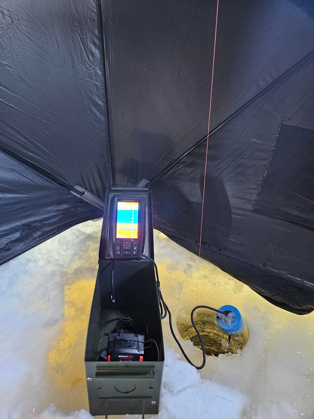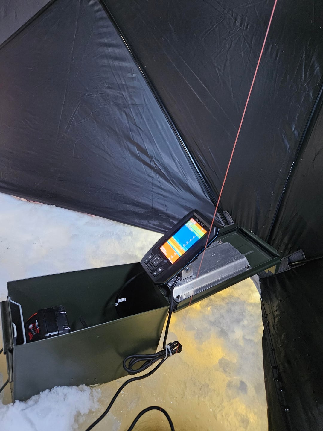 Made this nice little set up for my striker 4, runs off a M18 battery, going to be adding a 5v usb output to run led lighting for night fishing soon.