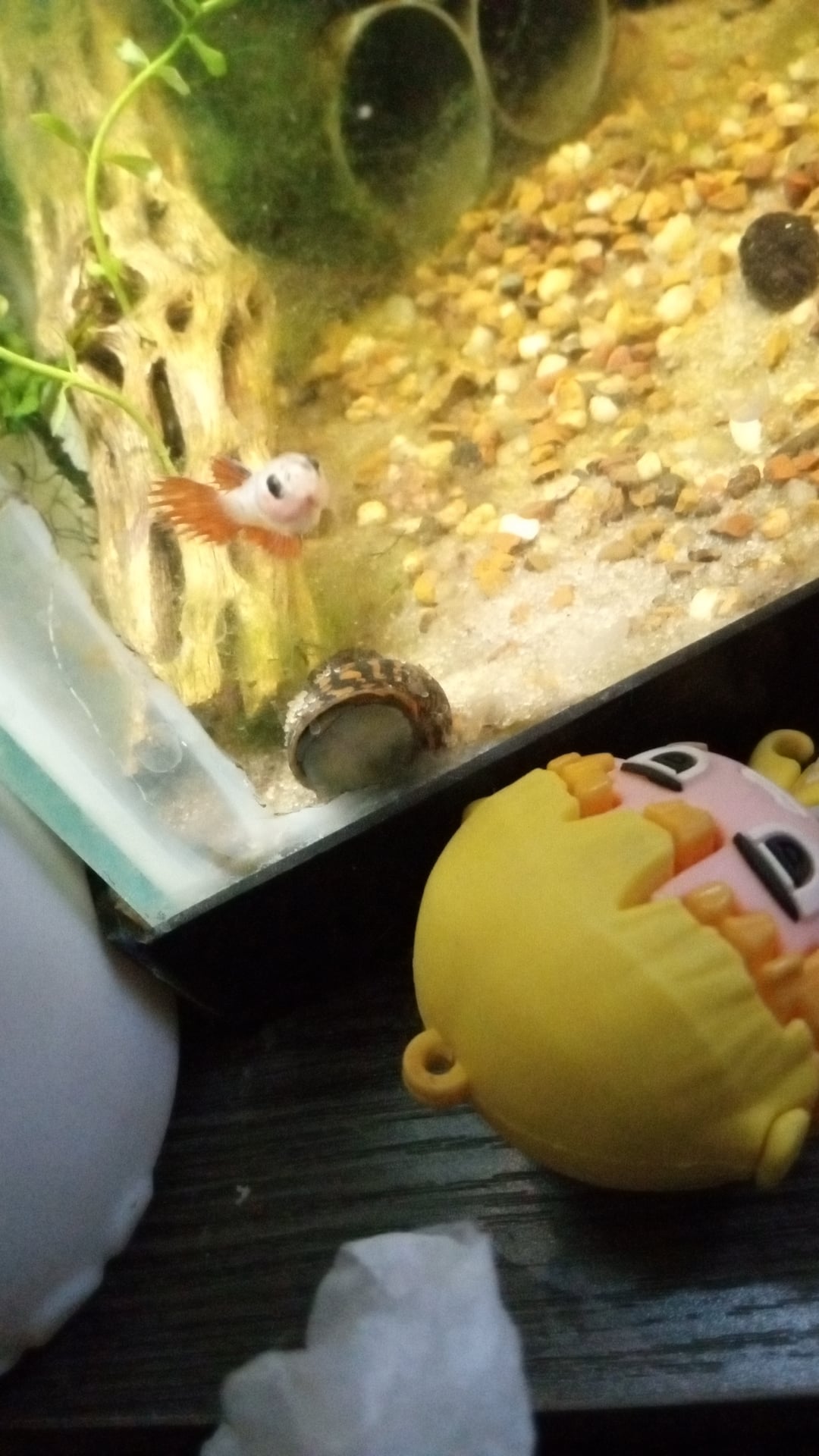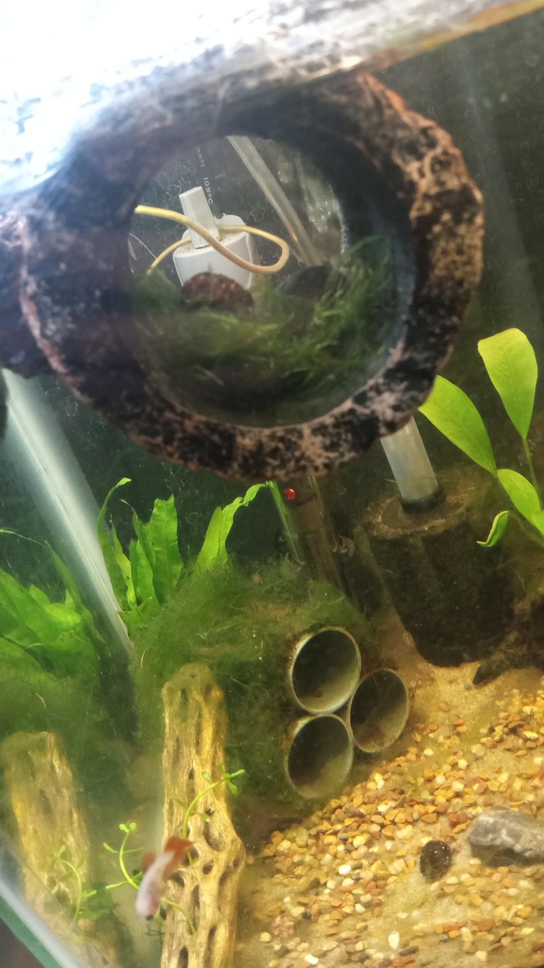 Was putting in a new java fern and decided to spice up my baby's log. Saw someone put moss in theres and it looked so cute. Also how did my snail get up there…š¤Ø.
