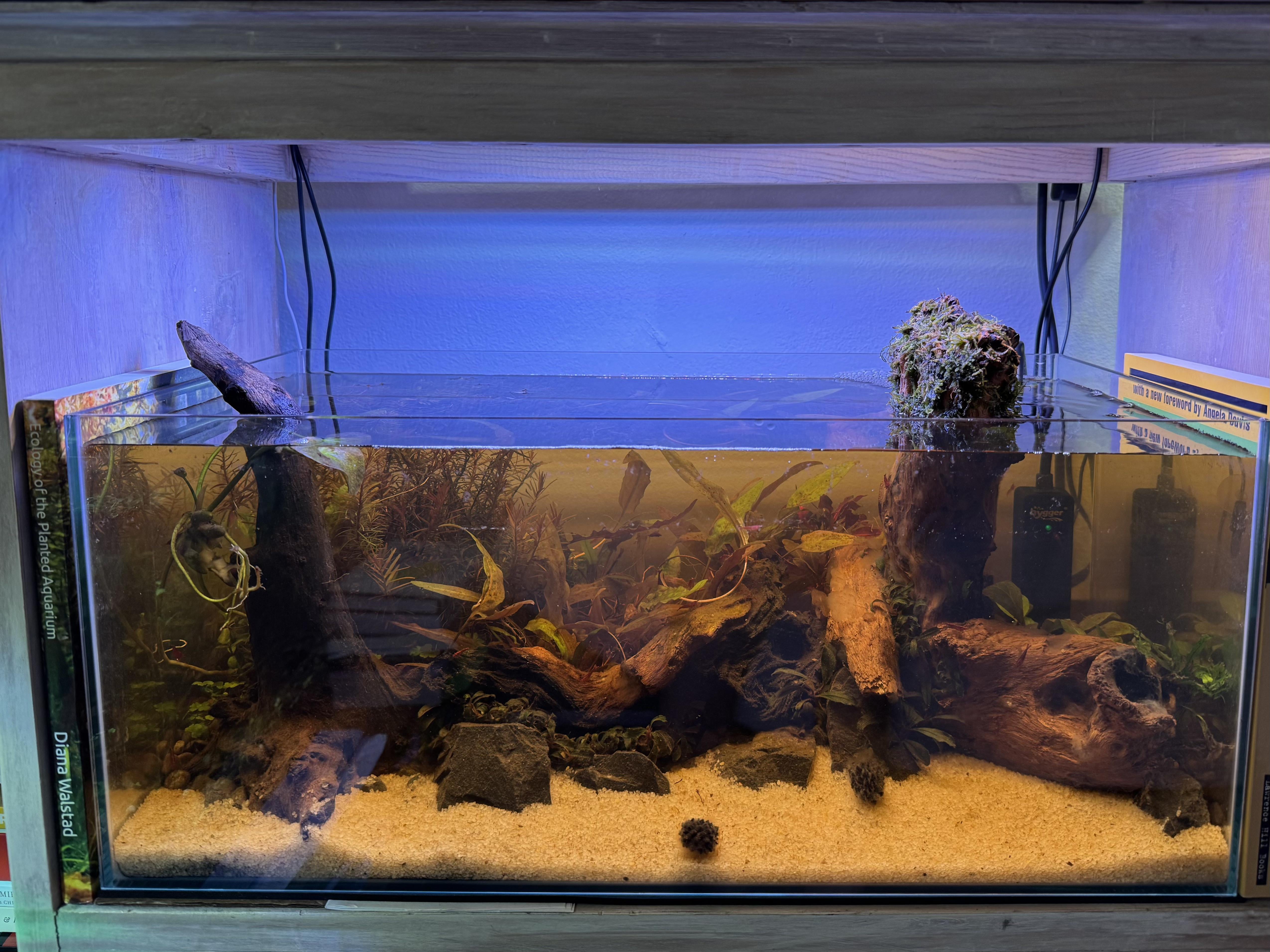 recently added my shrimp (hence the high water level) to my new 6.8 gallon (20” in length) shallow tank! (it has been cycled and nitrogen tested)