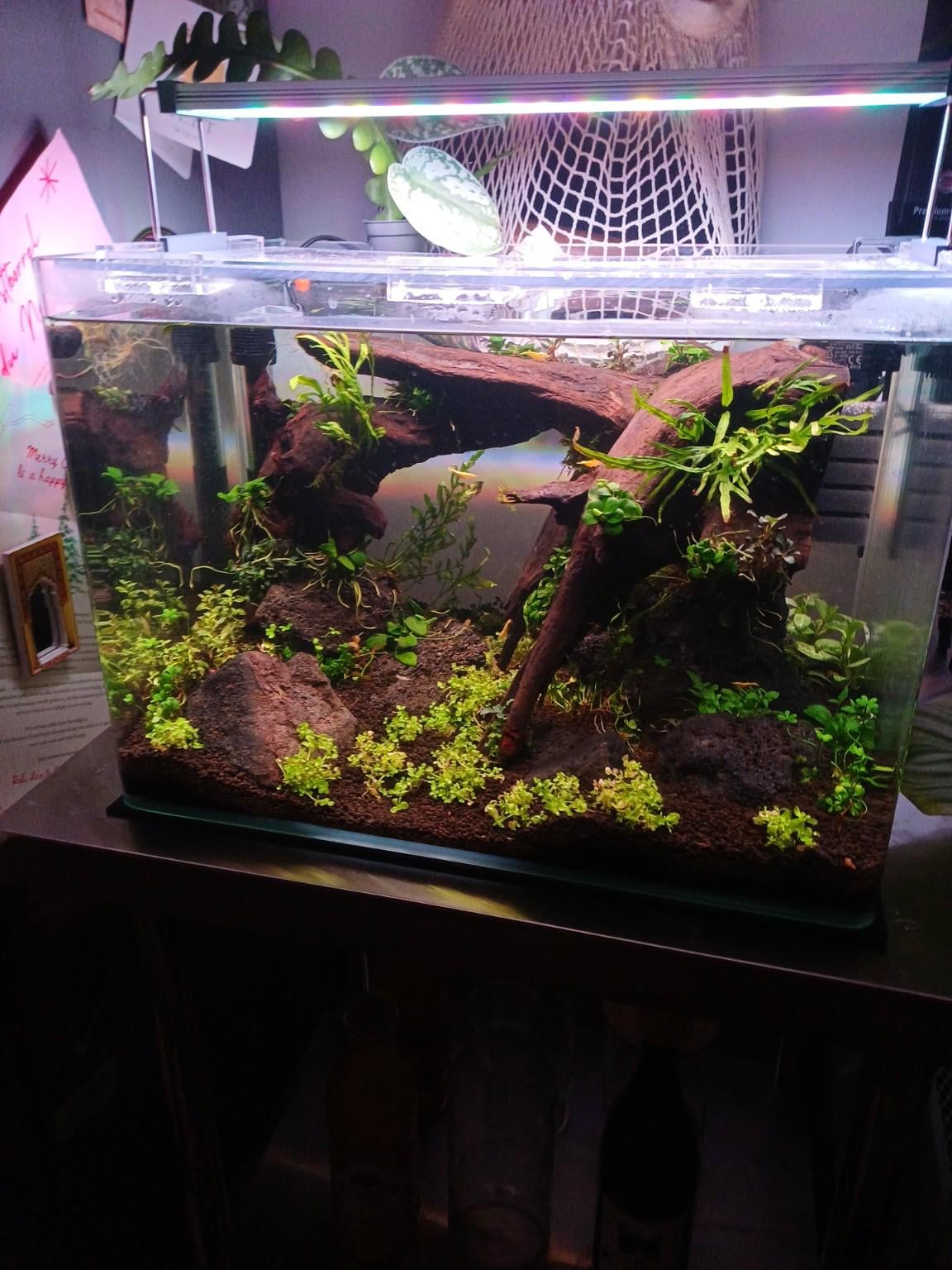+/- 45 liter currently holding 15 yellow neocaridina. Would like te add 15(?) Boraras brigittae. Suggestions on improving scape or stock? Posted by AdConscious9806