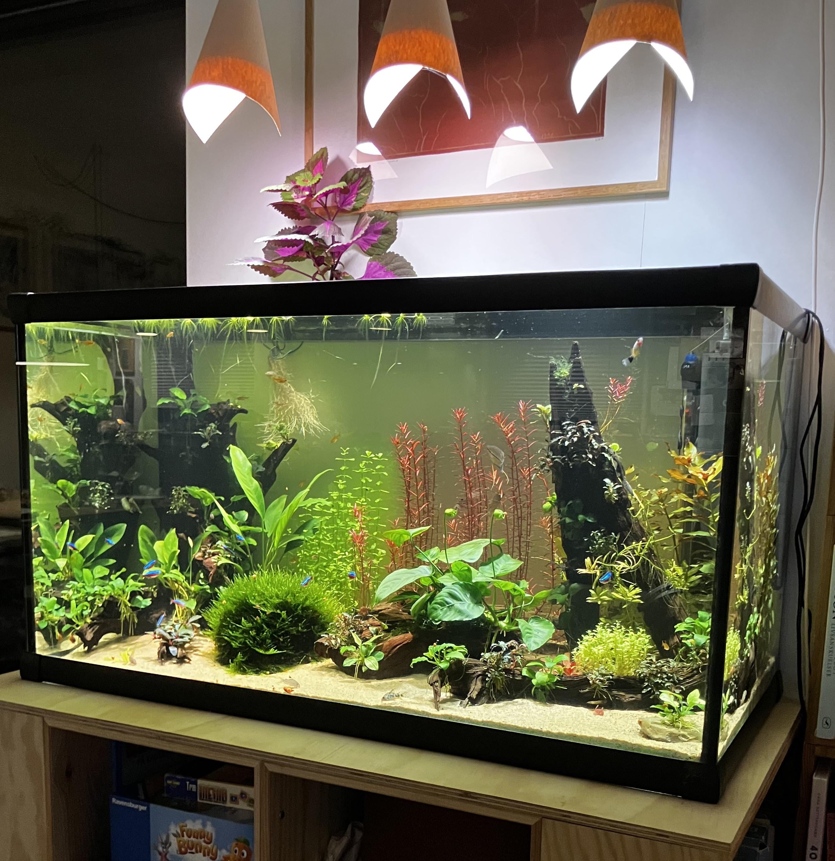 This summer my eight year old son and I got a 50 liter aquarium. 2 months later we got this 275 liters. This hobby has consumed me ever since.