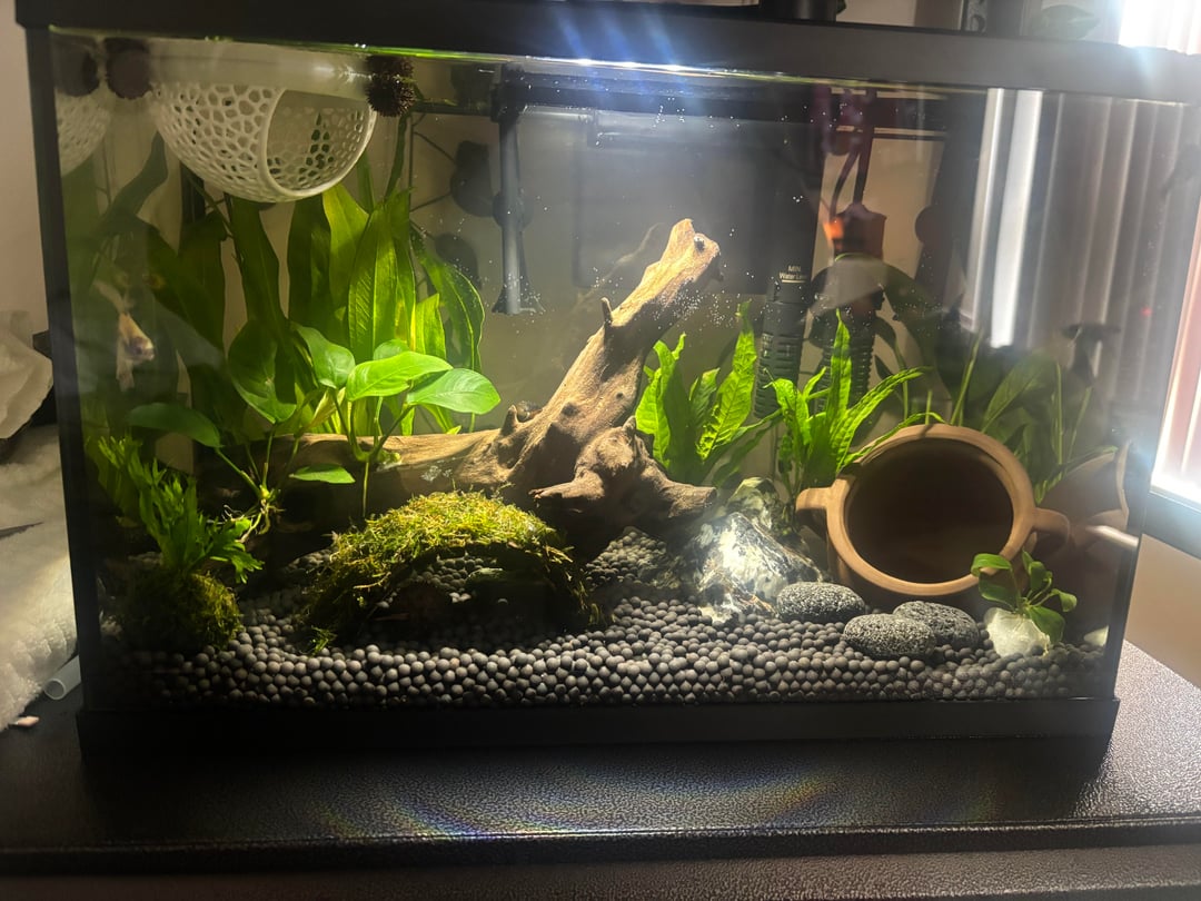 finally finished the tank with 3 amazon swords, 3 java ferns, and 4 anubias!