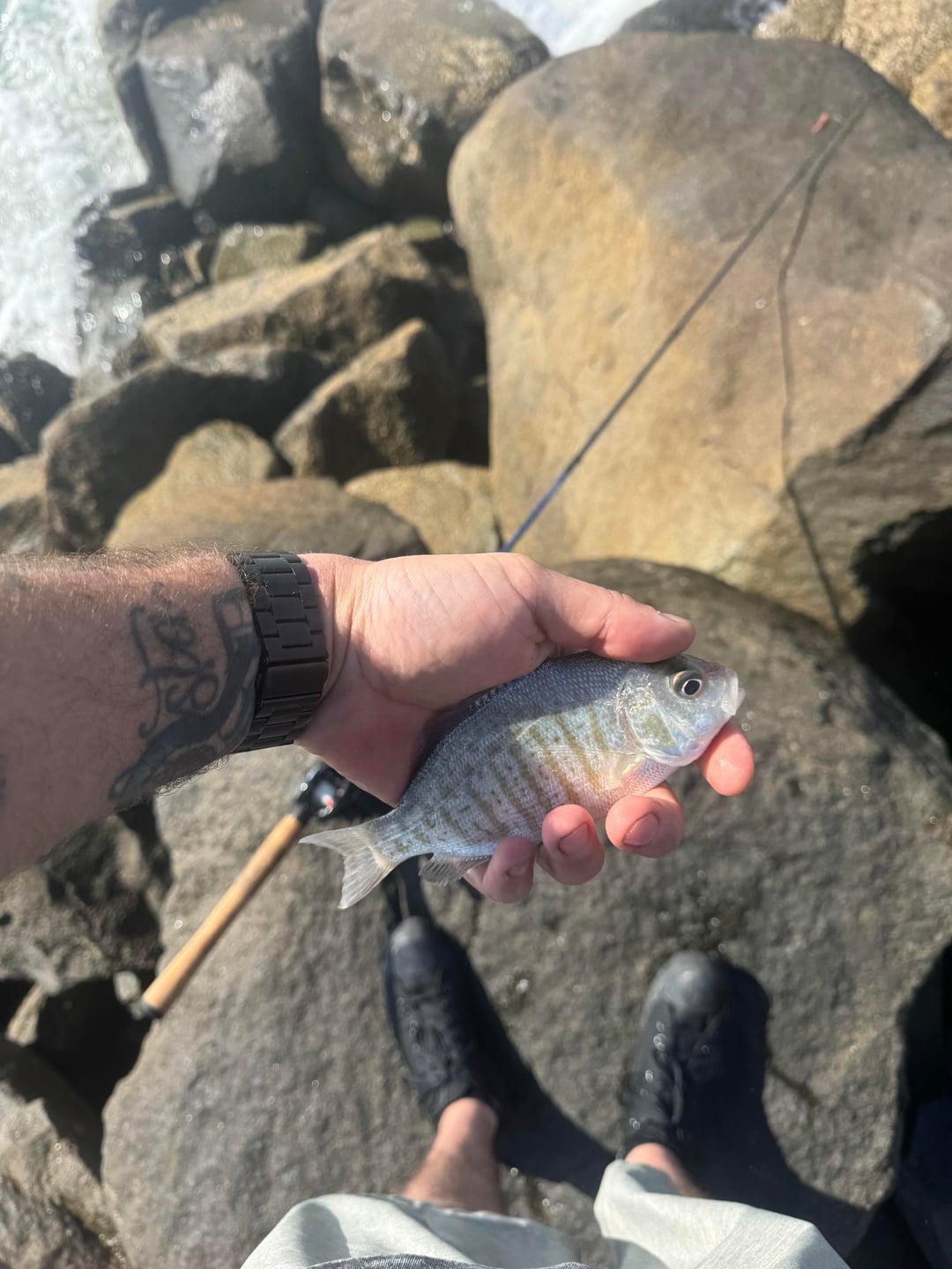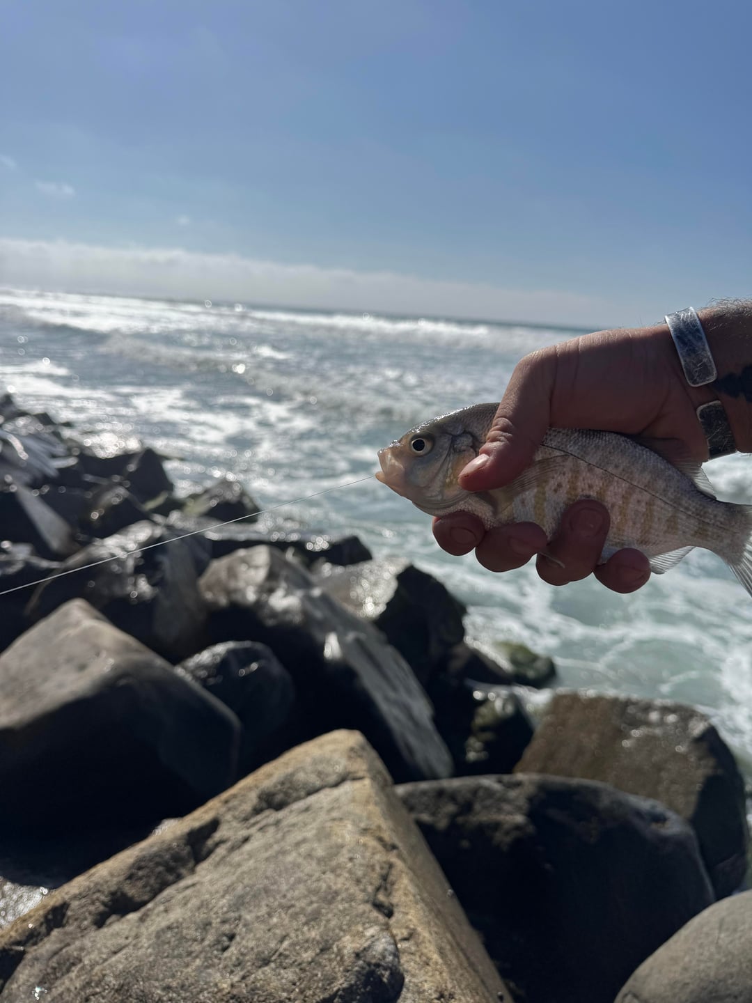 Caught 16 in two hours. Started out slow then I moved just down the beach and was getting hit almost every cast. Even with the big surf in so cal today it was a great day. Ended up slipping on the rocks and getting pretty banged up in all the excitement. Overall today was great had a good laugh when I fell.