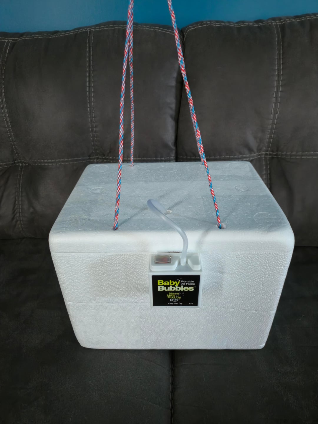 That is a very cool idea! I might have some suggestions to improve it. Wrap the whole thing in duct tape.. go slow, make it neat! but Styrofoam like that nick and breaks easy. Also along the same line, reinforce the spot where your bubbler attaches, or even move it to the top so it doesnt catch on things and tear off! or make a “tape pocket” while your wrapping it, for it to ride in