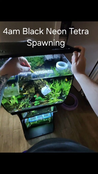 My Black Neon's decided to spawn after a 4am feed of Mysis Shrimp. I just wanted to go to bed but I had to save some eggs! Posted by Rtrdinvestor