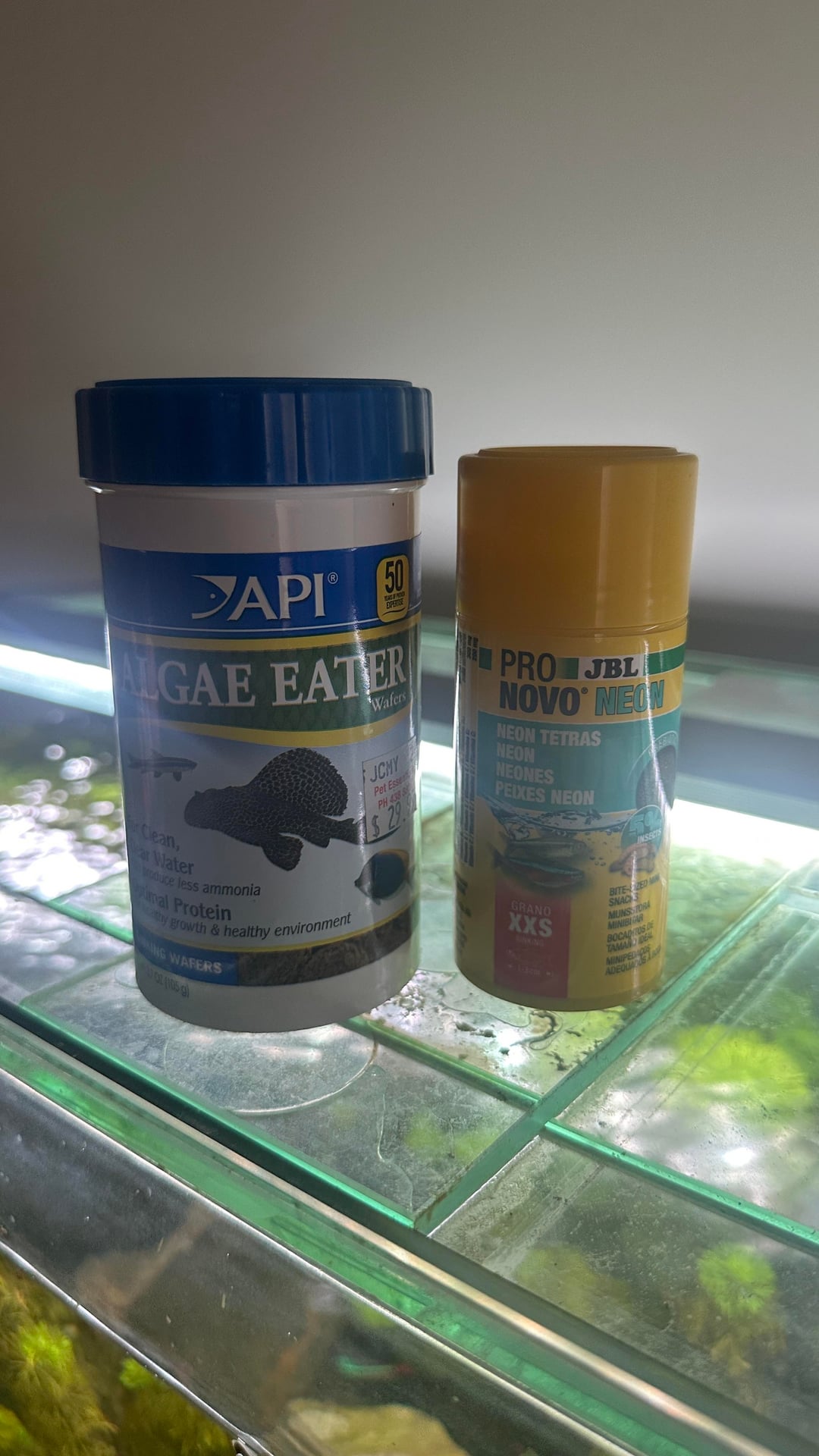 To try to fix the issue, I’ve reduced how much I feed them. I now feed once every other day. Their diet includes XXS granules, algae wafers for the bottom feeders, and I rotate in mysis shrimp and brine shrimp for variety.