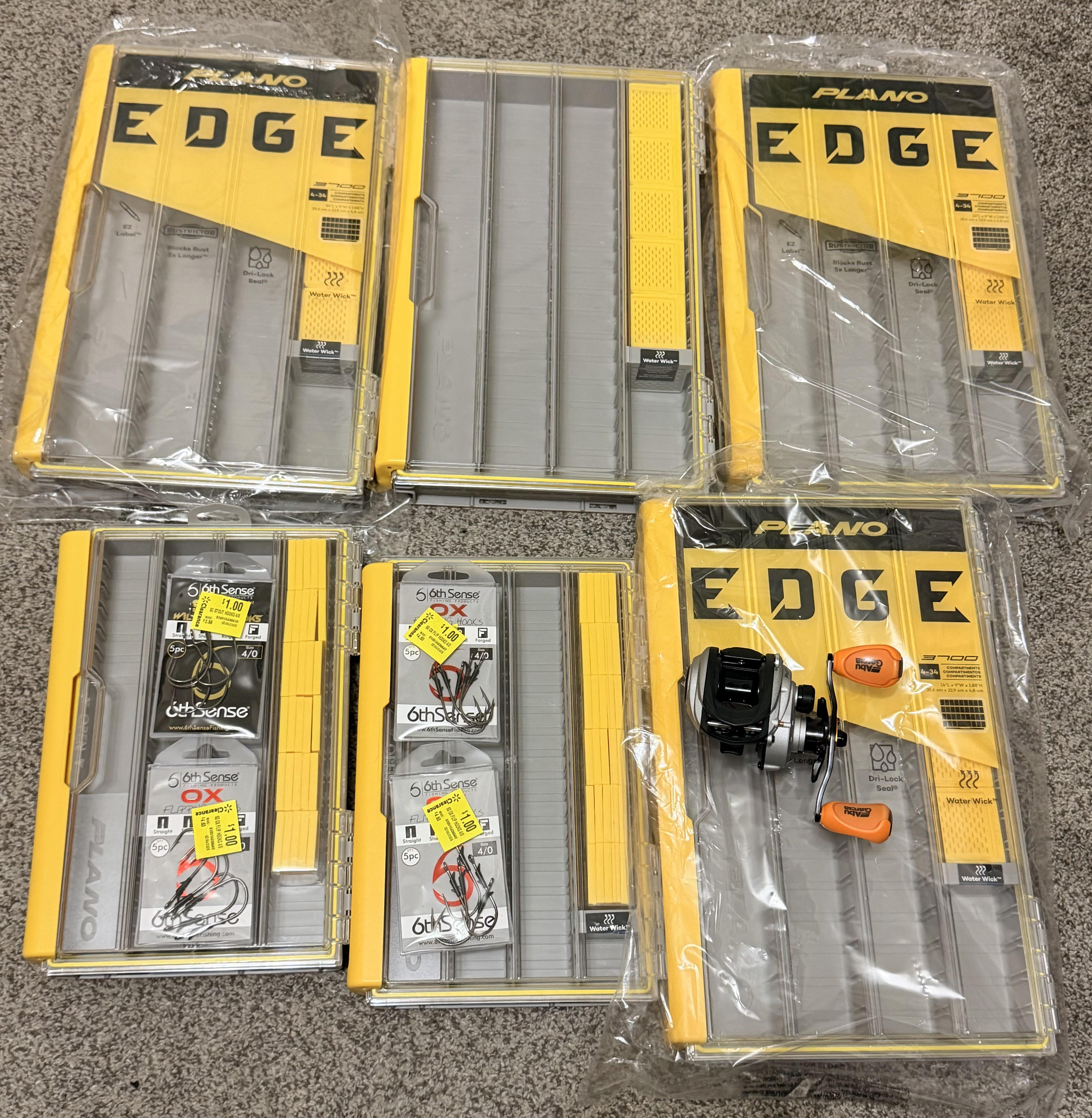 The Plano Edge 3700 boxes were $12 each, 3600 boxes were $10 each, 6th Sense worm and flipping hooks $1 each and the Max STX reel $33.50. Posted by shimanodc