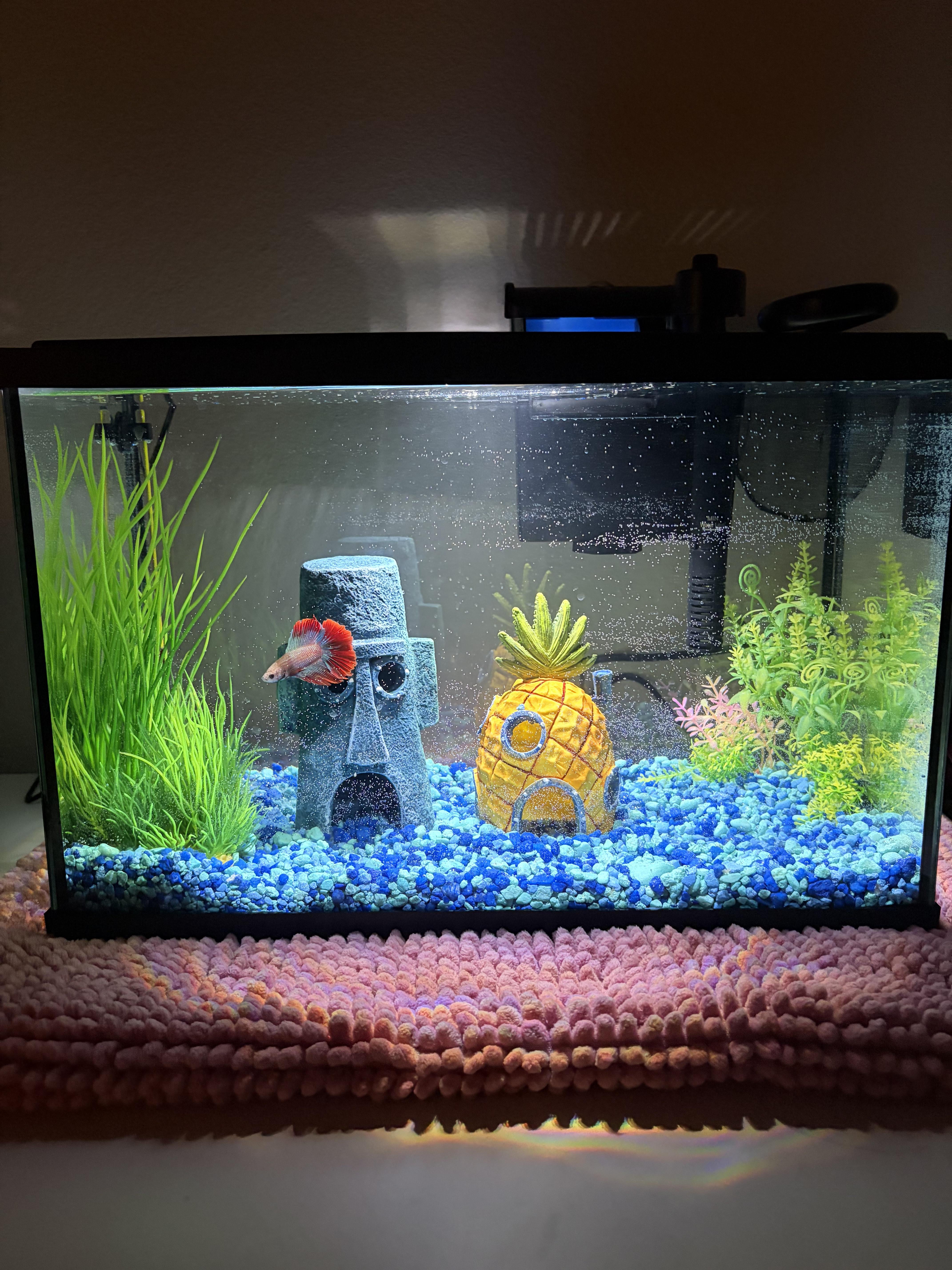 7. It’s looking great, people on fish reddits tend to be critical but don’t stress too much. Floating plants, resting spots near the surface, etc. are all great upgrades your fish will love if you’re thinking of things to add. Betta logs are one of my favorites. I love the size of the tank for him and the decor is fun. Such a pretty fish too 🙂