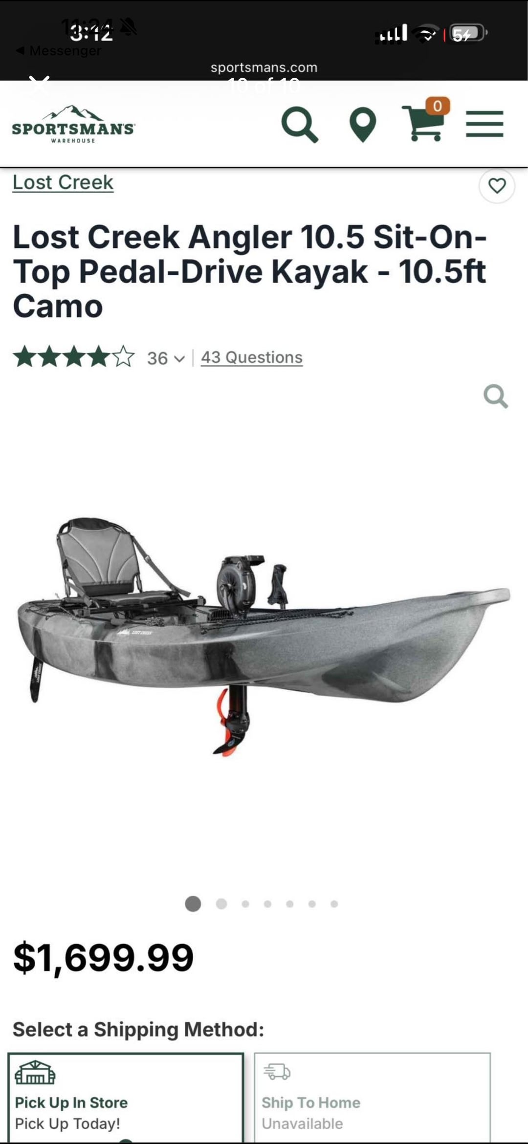 I just came across this lost creek angler 10.5 ft pedal drive kayak. I made an offer for it and the seller accepted, and I think I got a pretty good deal.