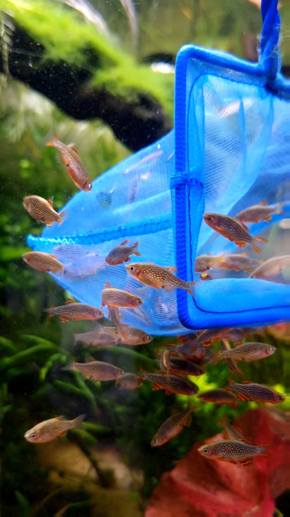 I literally just had to tear down one of my tanks entirely to get all of the Ember tetras I had out. Didn’t know this, but apparently they just straight up swim down into the substrate and lie flat when they’re stressed! So hard to get them out without smushing em!