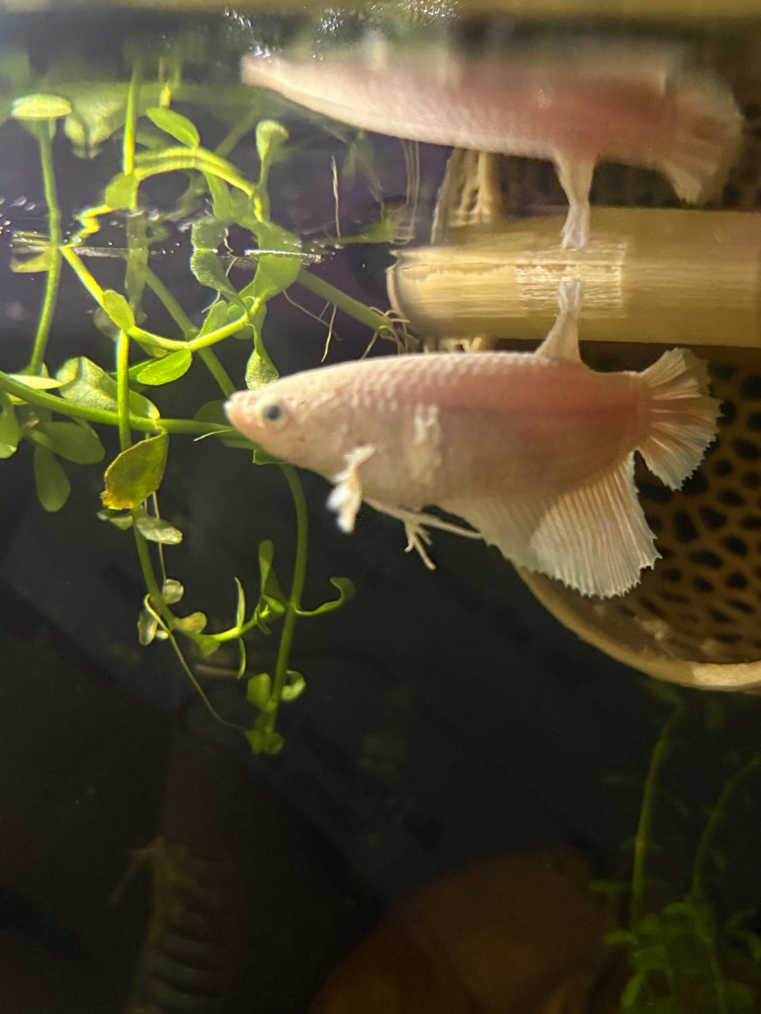 I remember this fish from an earlier post where she was stressing in her tank whilst it’s been cycling – she’s very active and swims back and forth a lot. Is she in a bigger tank or back in the small one?