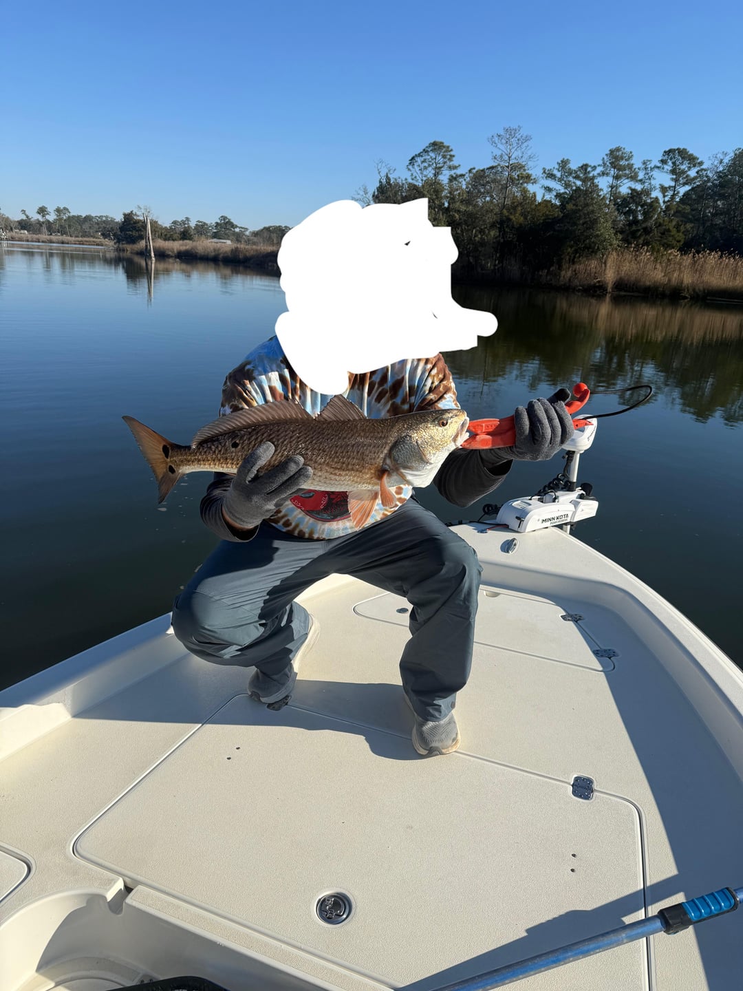 Redfish caught on 15lb test and a live shrimp Bon Secuor River.