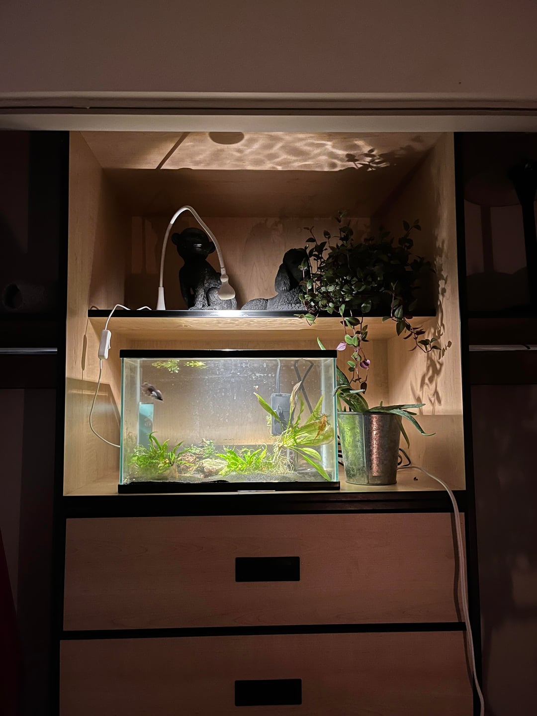 I got her as a moving-in present for my partner when he moved onto campus for university our first year so that he’d have someone to keep him company (but secretly I wanted another aquarium and he’s my enthusiastic enabler).