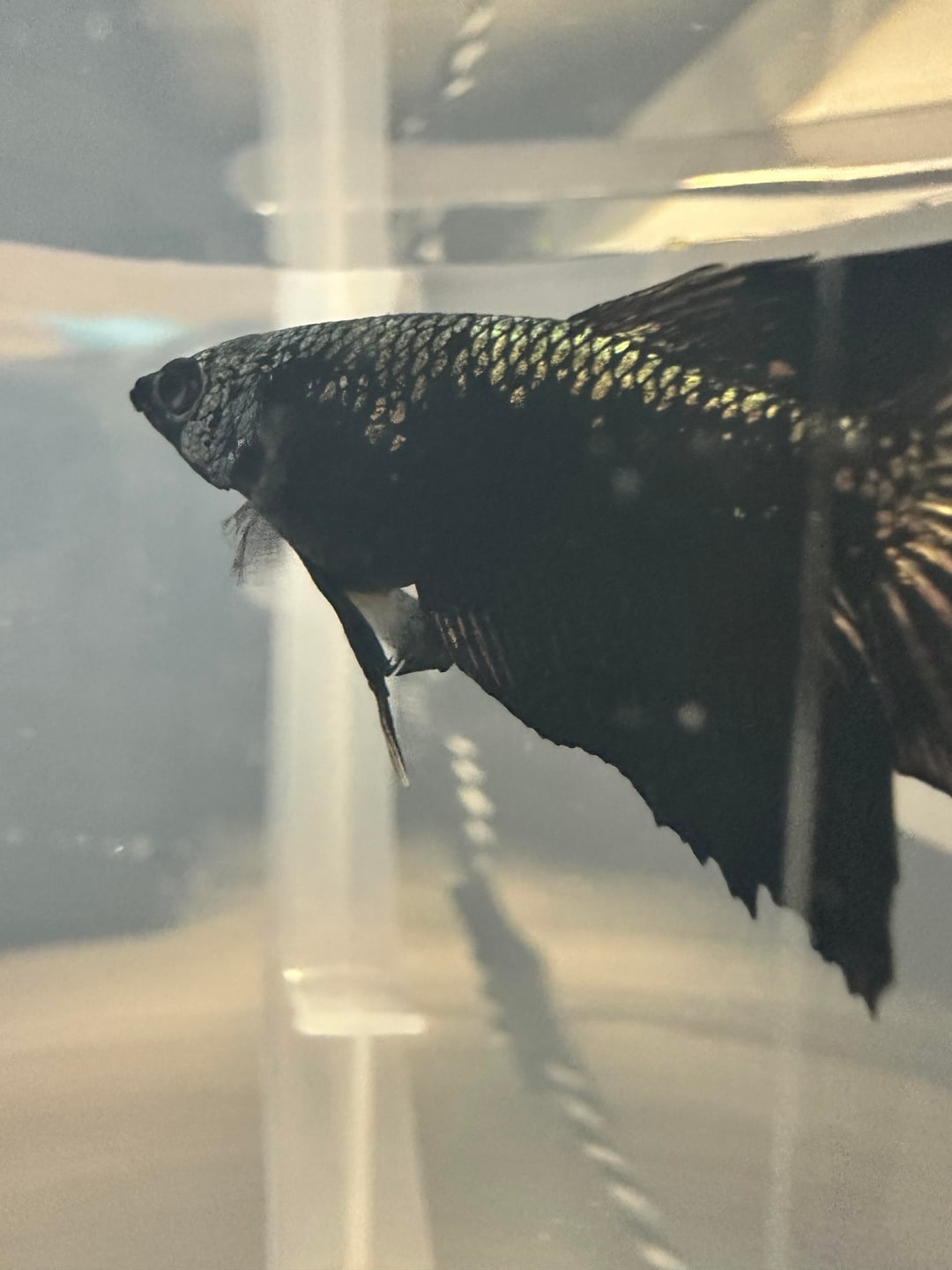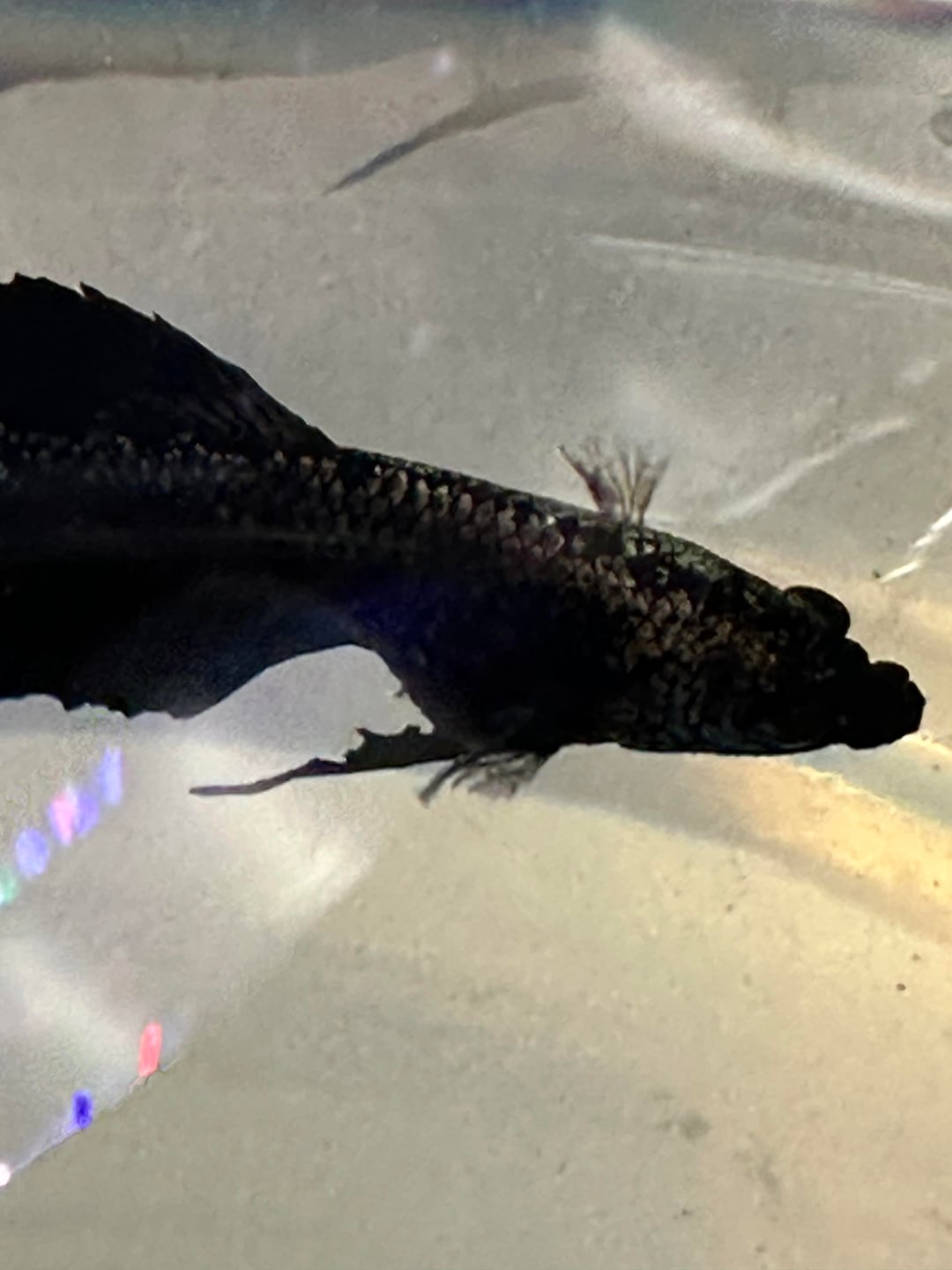Pics 1-5 are from tonight in the hospital tub. Last ones are from the first appearance of the symptoms and his normal look. For reference, he is one of my 2 bettas, and the other one is doing very well, so I promise I know what I’m doing in general.. but this has completely escaped me.