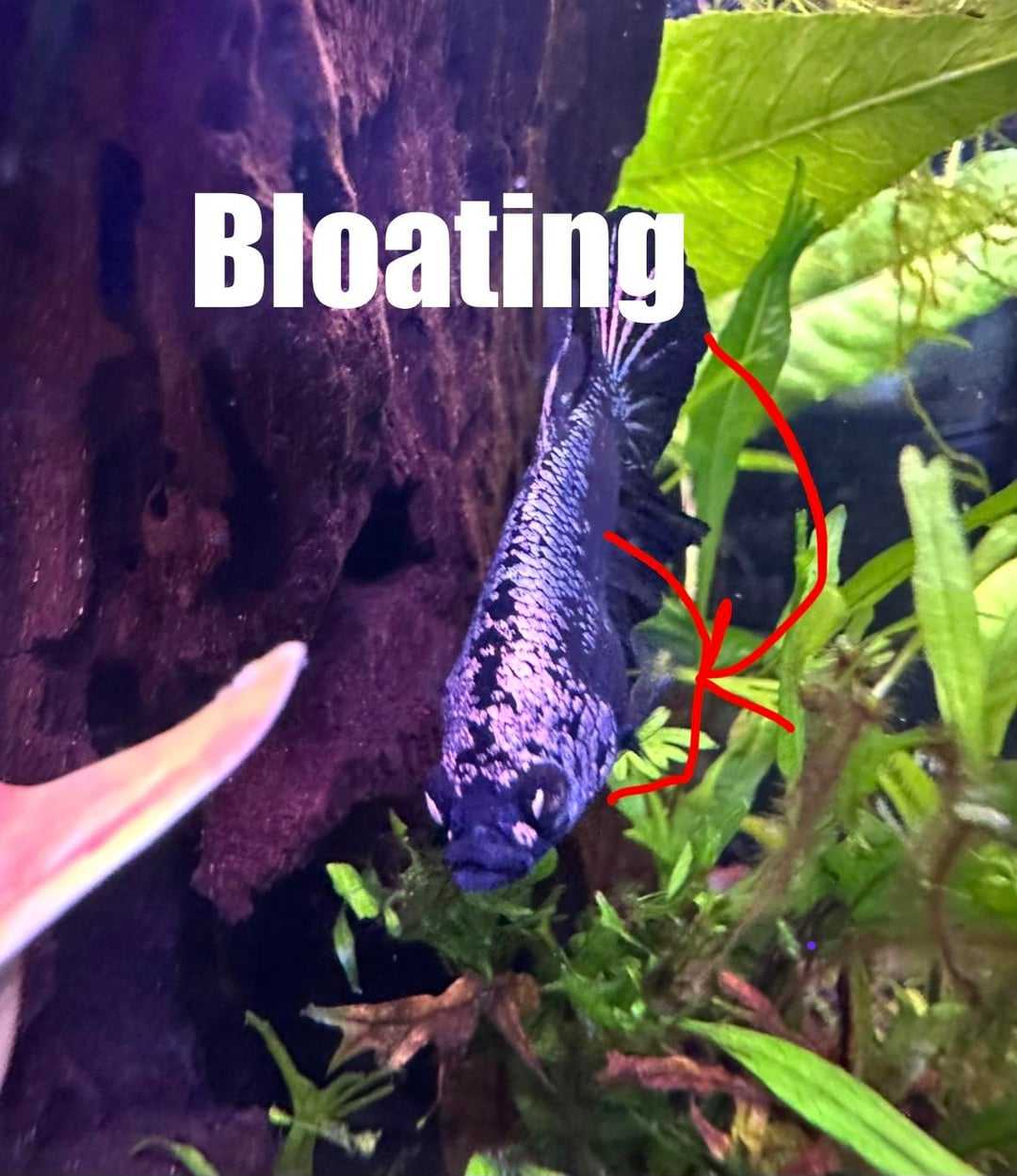 It started around a month ago. I went to feed him, and noticed he was a little bloated. So I held off feeding and fasted with no lights for two days. As soon as I fed him again, it came right back, and hasn’t gone since. I’ve tried the fasting 3 times since and it showed no improvement.