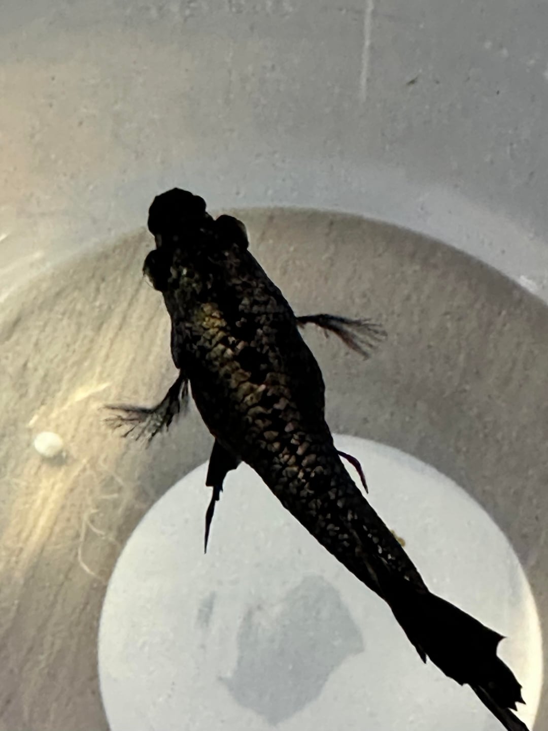 In a haste of desperation, I gave him a 15min salt bath tonight in a hospital tub. Both in the bath and immediately after, he was lethargic and his fins were clamped, which he hasn’t been this whole time. I feel like I only hurt him more by doing this.
