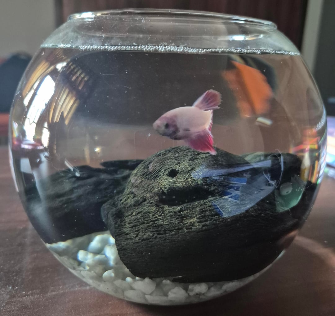 Idk if u guys remember my last post about 2 weeks back but this is the guy who I got from the shop for free since he was weak asf and about to die….had him in a tiny bowl as like a nursing tank? and u guys insisted on getting him on a bigger tank asap…so yeah….