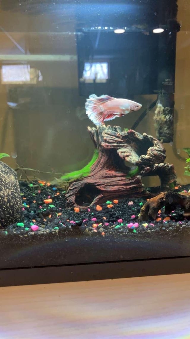 The first picture is Diamond’s first night home in his new aquarium. The second picture is from yesterday. I’ve had him for a little over a month.