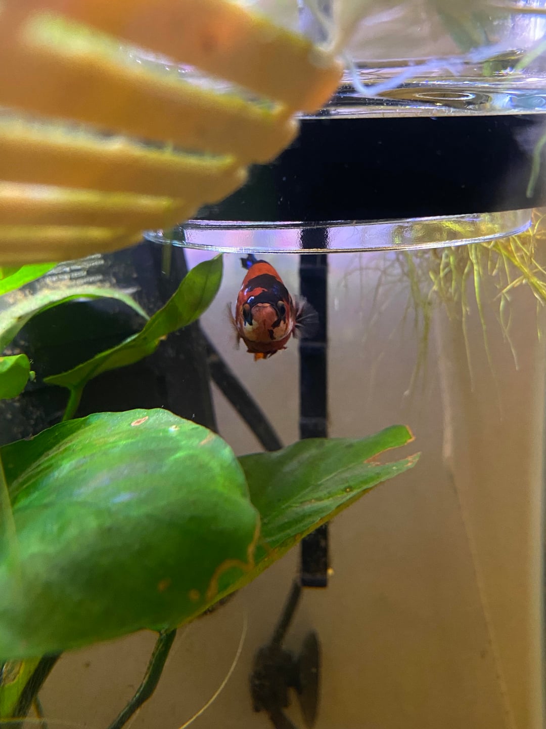 this is ginkgo! i've had him since june and this is the fist time he's never flared both gills. he's been like this for around a week now. he doesn't look injured from what i can see. he's constantly resting on a piece of wood so maybe he hurt himself that way? he's still eating normally. he does hide a lot though but he's always been like that. mostly wondering if i need to medicate for this since it's new or just let it be