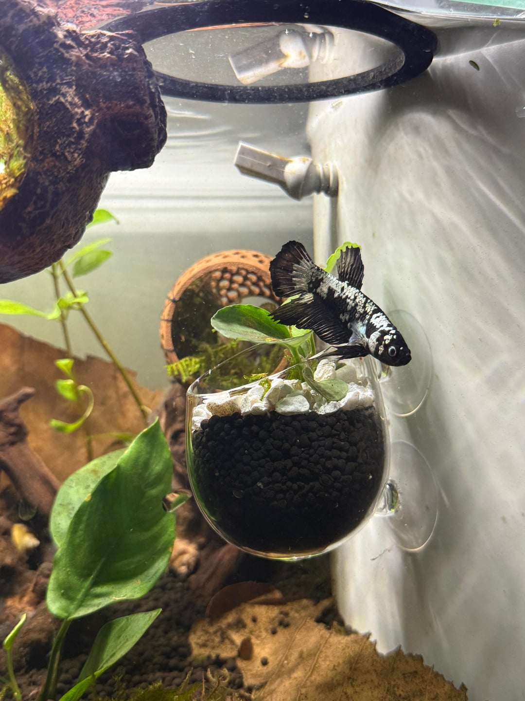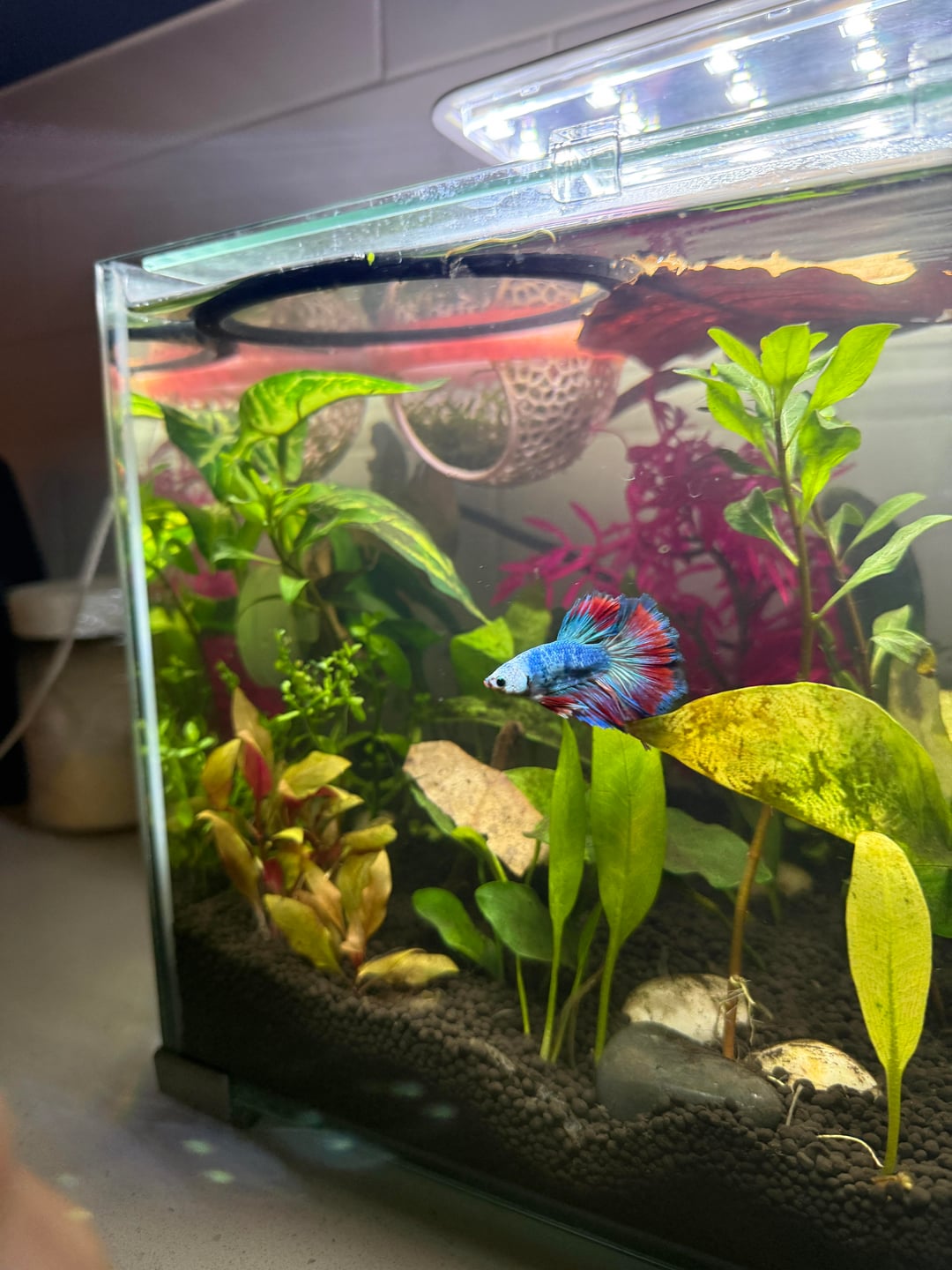 Just got this beautiful halfmoon rose tail special little dude. I already want to get another tank cycling for a third.. (or diff freshwater)😠Don't know what to name him. The samurai guy is Aragorn.. need a LOTR related name bc I'm so stuck!