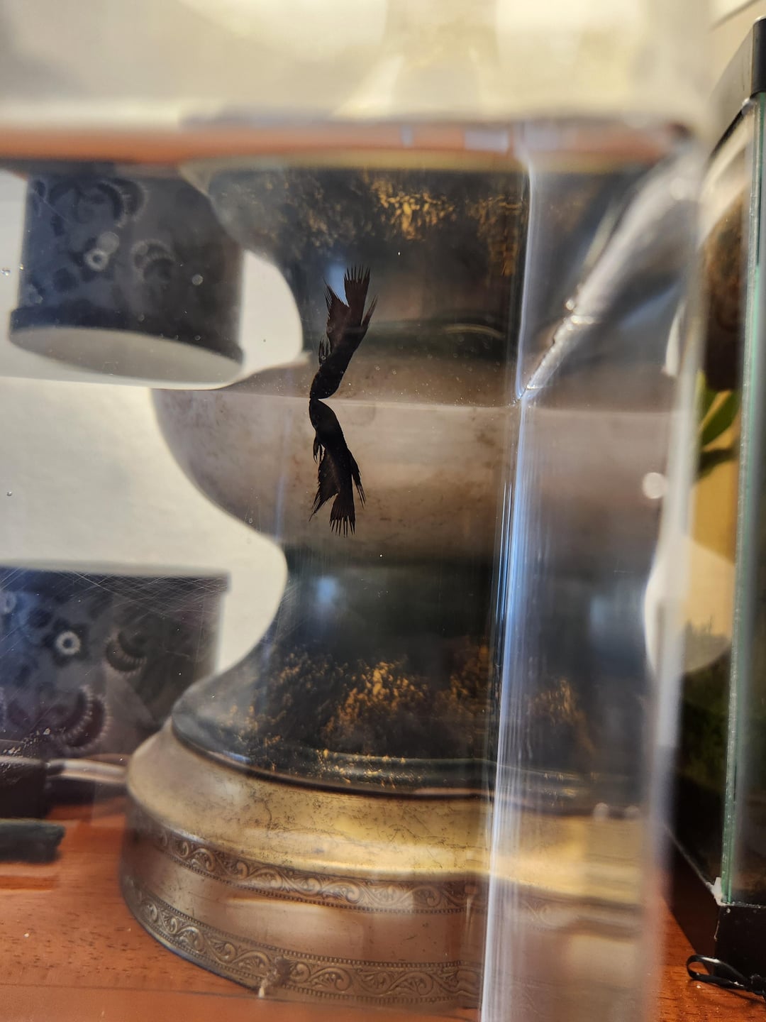 His name is perchance because I genuinely didn't know if he'd live or not. I got him from petSmart for free because he was not moving in the cup, barely alive. Took him home and rehabilitated him, treated him for severe ammonia poisoning and swim bladder issues. This 2 months apart