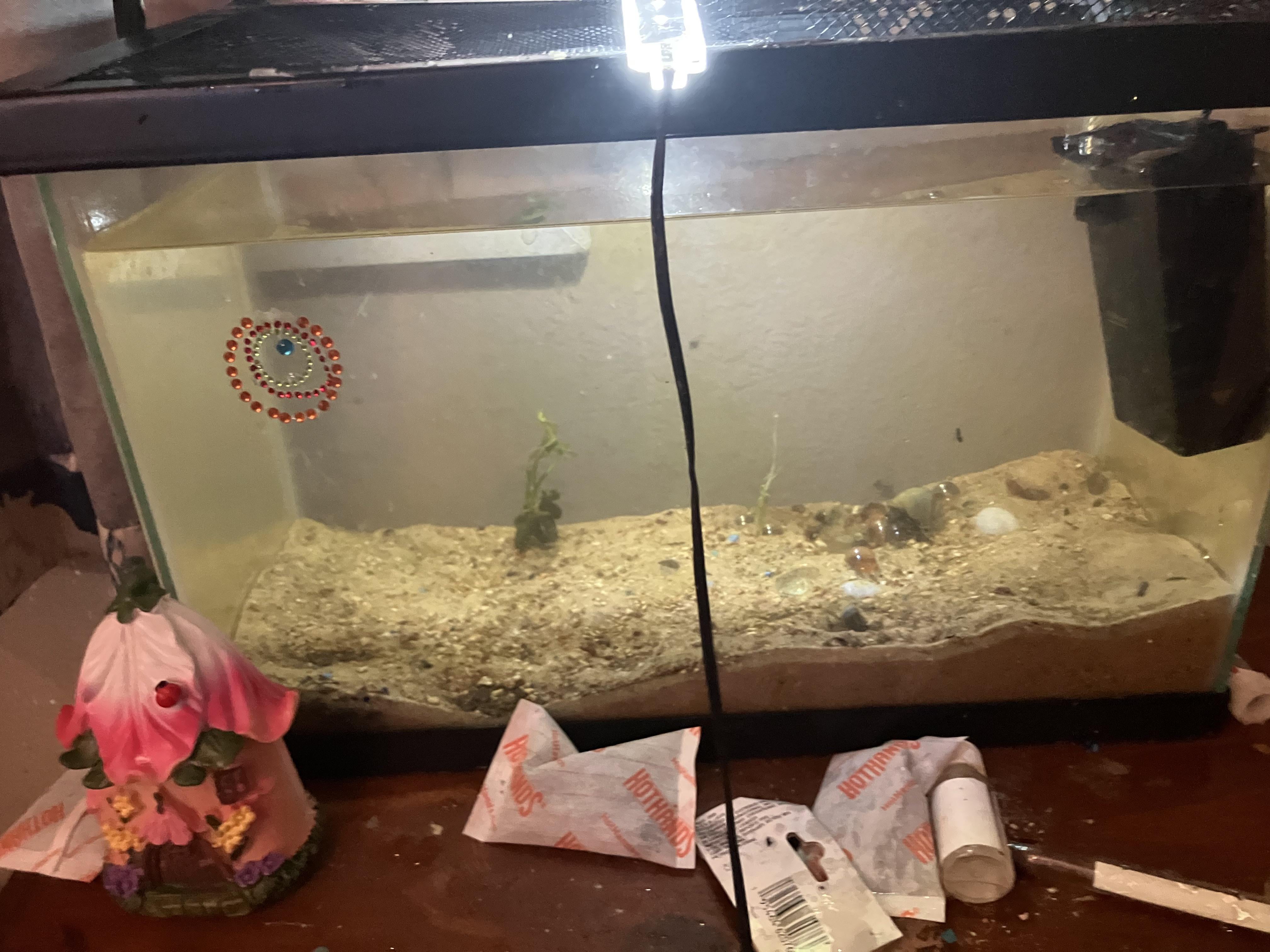 i’ve had my betta sashimi for 4 months, this morning she was gone. i couldn’t think to much abt it cuz i had an asthma attack while my grandma was at the dentist and i had no access to my inhaler and tried to keep myself breathing for a while until i borrow one from neighbor but got so tired i just ell asleep after. and i just checked again and took apart her whole enclose and around it and she’s gone. i checked in her log, in her castle, under the sand, in the filter, everywhere. i let my cat sleep in the room last night but i dont think he’d try eating her because he’s very well trained, but then again he also isn’t scared of baths or water. if he DID eat her, could he get sick? i dont wanna lose BOTH of my favourite pets. pic of the tank that i completely took apart.