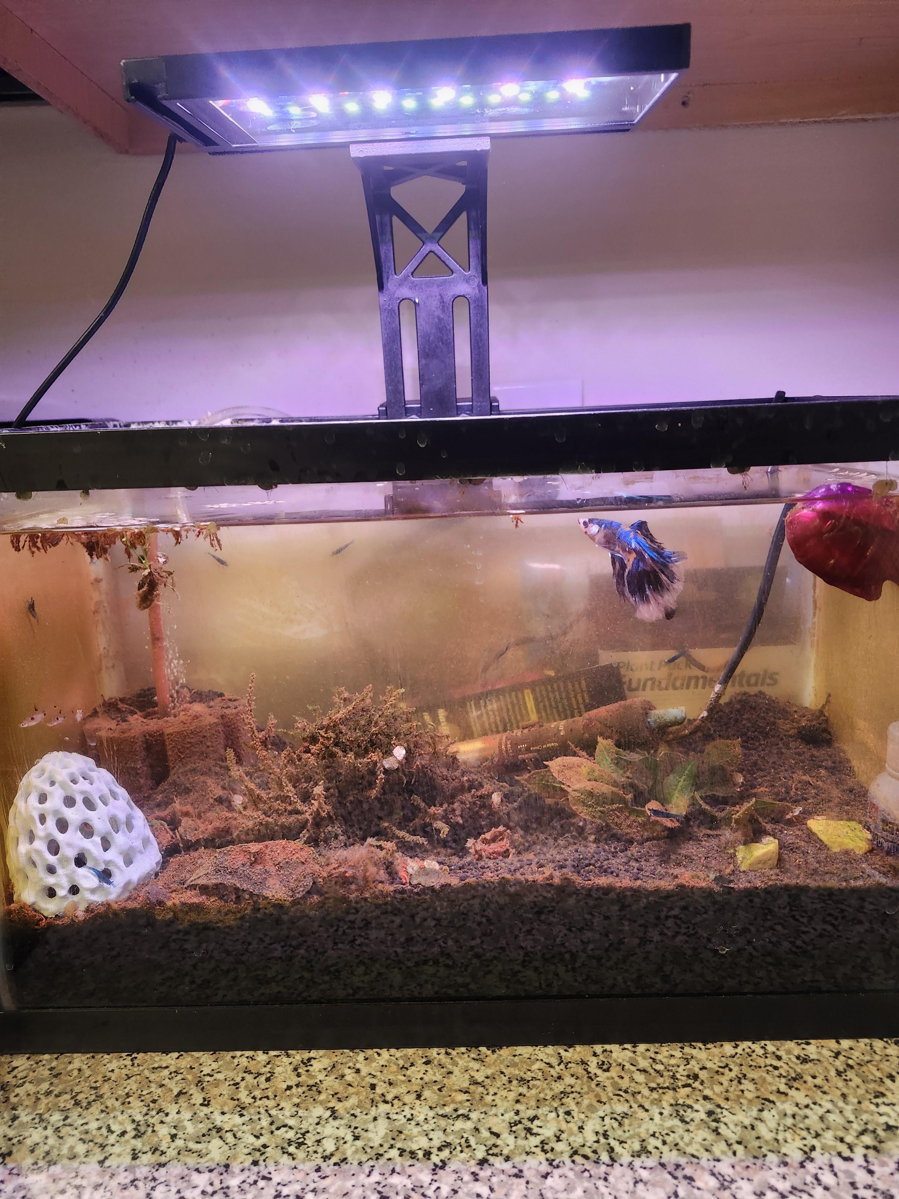 Edit: Also, is your filter halfway buried in the substrate? And your heater is just….chilling on the substrate as well?