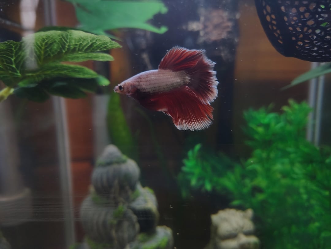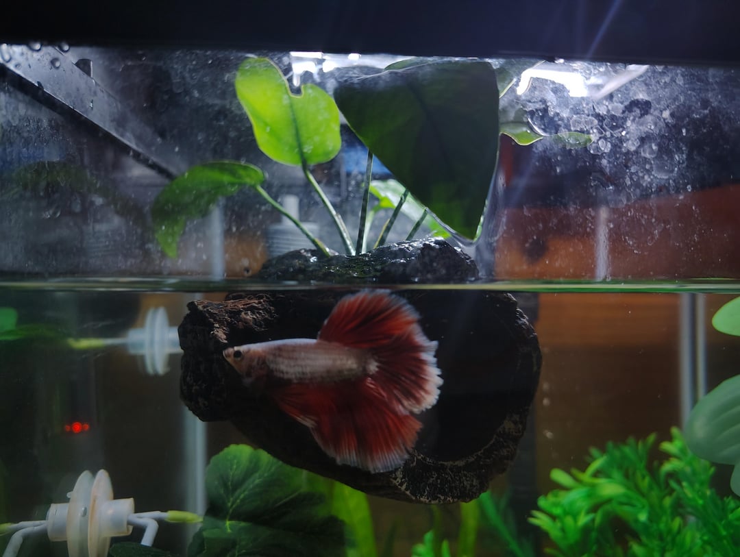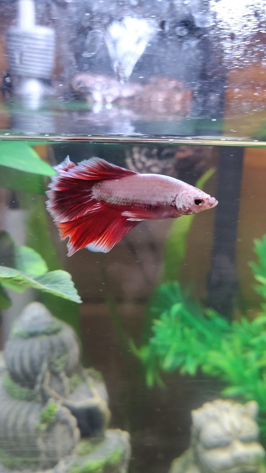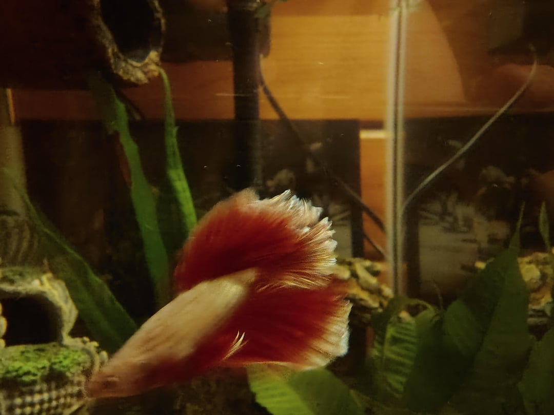 Outside of my emotional turmoil, Ares has been tearing his fins and I'm not sure what it could be, I have a Anubias with hanging roots in a floating log he goes into but I didn't think the roots could do that, but I'm just trying my best to find a cause. He has a Buddha he goes in and out of, but I don't see him doing it often, should I remove that and put something else in the tank? No artificial plants, gravel and sand, plastic decor (my most likely issue), no obvious hazards. I removed the plant from the log for now and have it floating between two leaf hammock suction cup things, and have his floaters up at the top as much as possible, I don't know if I could've triggered this but I did remove his hammocks on the walls after they began to build up iron on the silicone from my hard water.