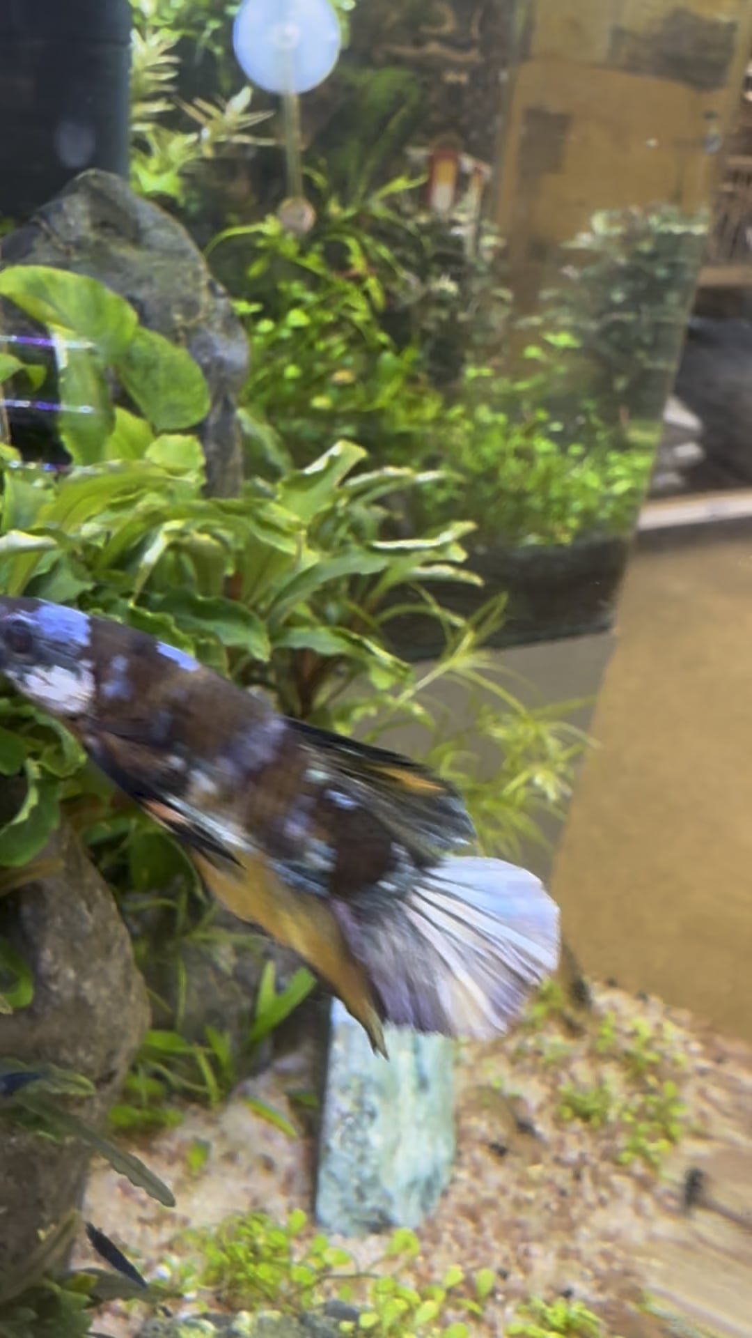Christmas came and I flew home with a juvenile halfmoon. In the tank. Complete terrorist. He stressed the Cories out so much when he hit adolescence that one passed the day I went to buy his bachelor pad. So he’s all set up in his 30l now.