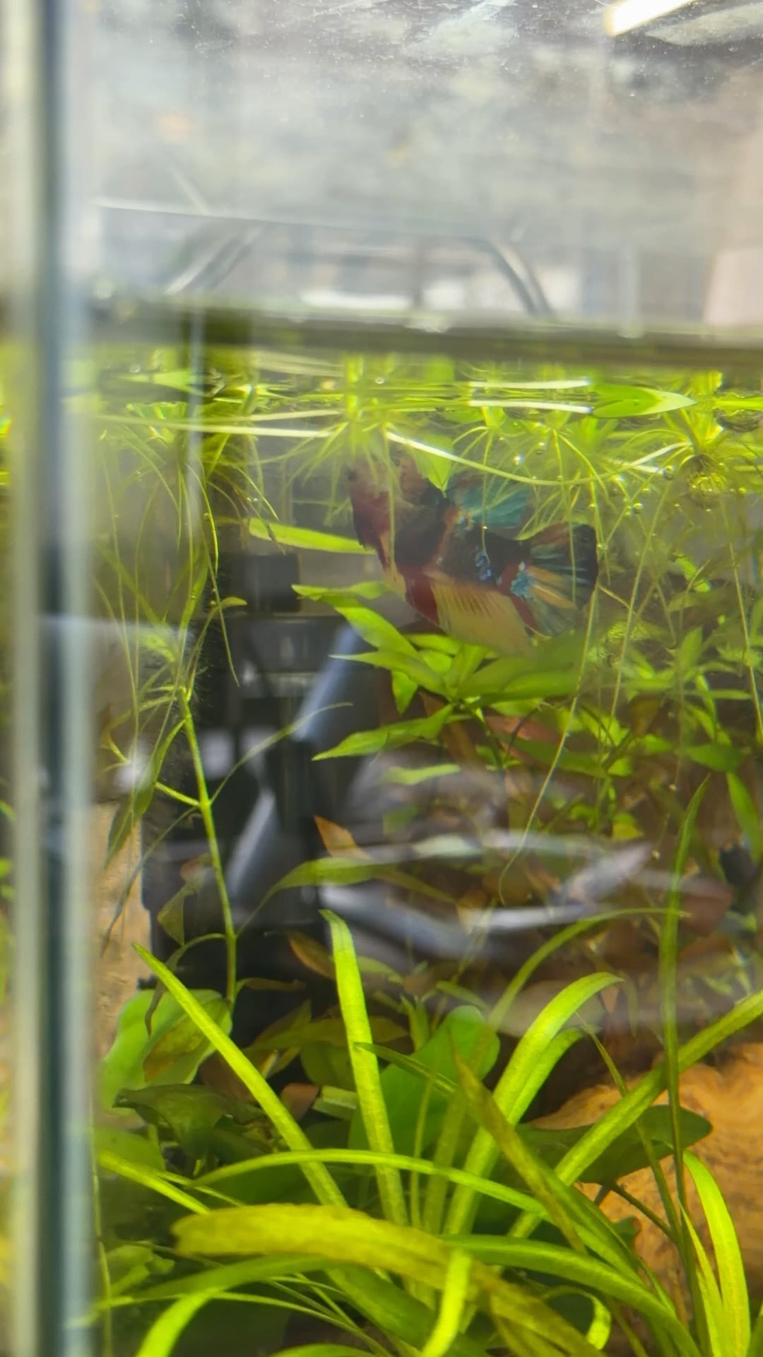 See how the ground pellets belong to him and not the snails and shrimp lol def need to find a feeding spot for the invertebrates, hoping we’ve provided enough plant coverage in our 6 gallon cube.
