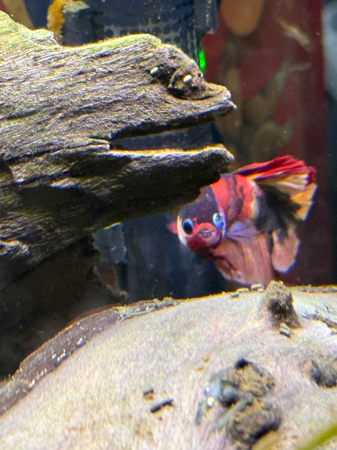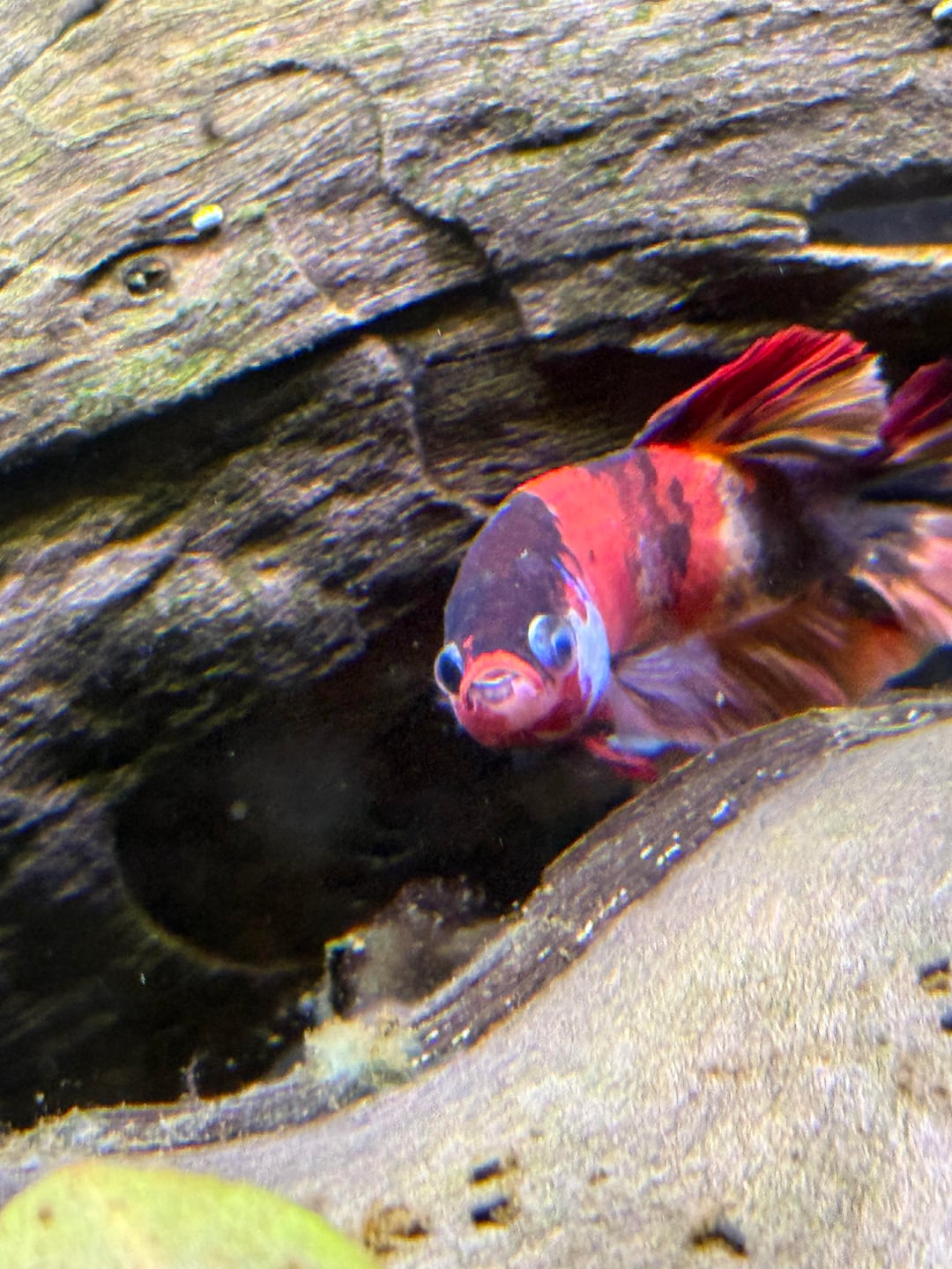 hello all! i’ve had betta fish for about three years now and finally experienced one of them jumping out of the tank; i had it open for literally a split second when he jumped out and onto my floor. i was able to get him back in and he’s swimming around ok but im worried he injured one of his eyes. you can see in the photos that one of them is smaller and completely dark while one is a bit swollen and cloudy.