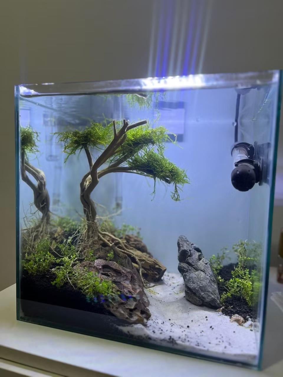 Nice scape! I’m planning a rimless for my friend with a stick/moss tree also.