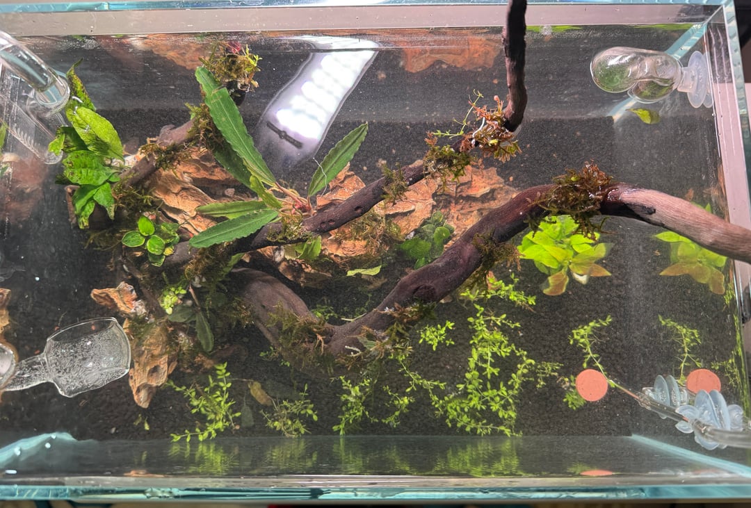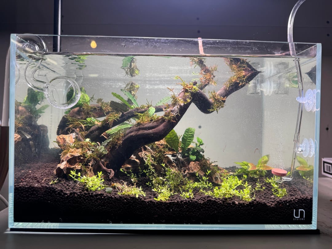 Love how it looks so far. Really hoping the pearlweed carpets. Any suggestions on what to put on the left side? For stocking, going to get cherry shrimp and some kind of nanofish (thinking chili rasboras). Any comments thoughts suggestions would be appreciated. TIA!