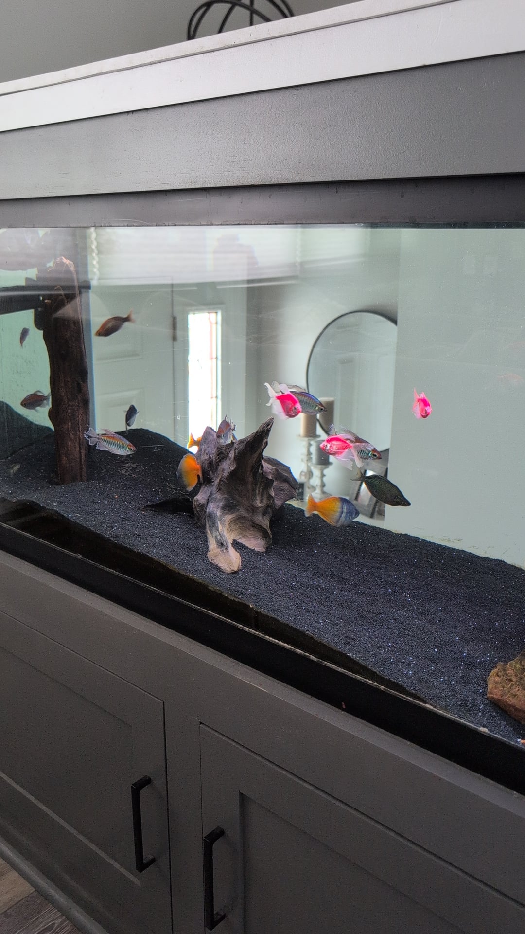 pickleruler67 on February 14, 2026 4:43 pm Tanks cool but the stockings a little odd and the fish could use some plants. If you bought some anubis or java fern/java moss you could just stick it on the driftwood thats already in the tank