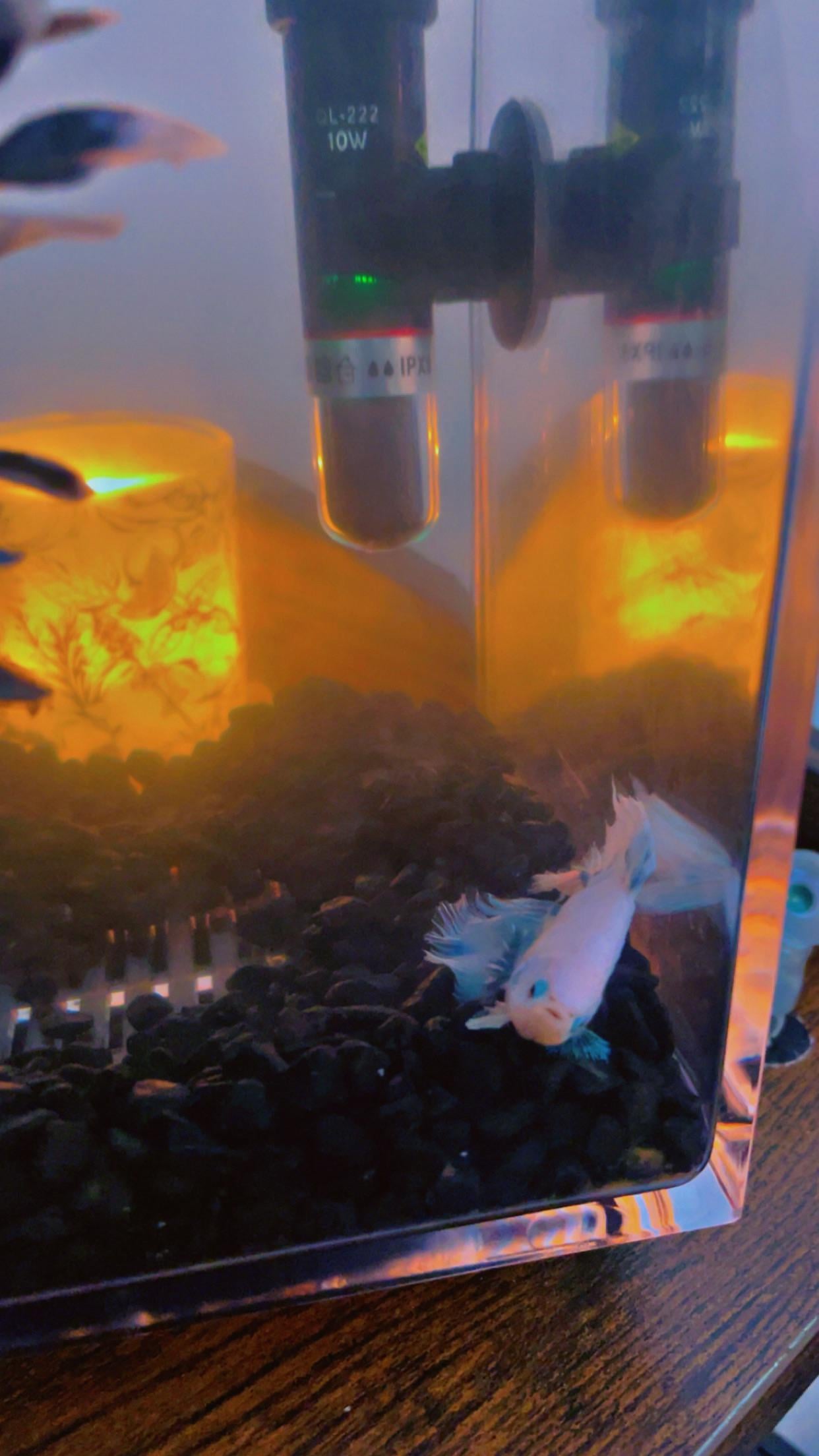 • Tank size: 4 gallon • Heater and filter? (yes/no): yes • Tank temperature: 25 (as suggested) • Parameters in numbers and how you got them. Key water parameters include the amount of ammonia, nitrites, nitrates, and pH.: 1 betta • How long have you had the tank? Few months How long have you had your fish?: same time • How often are water changes? Once every 4 days (partial changes) How much do you take out per change? 2/3rds What is your process?: remove fish drain slowly • Any tankmates? If so, please list with how many of each: none • What do you feed and how much: tetra bettamin 2 pellets twice a day ish • Decorations and plants in the tank: decor • If you haven’t already posted a picture, please post pics/vids to imgur and paste the link here: I don’t use imgur