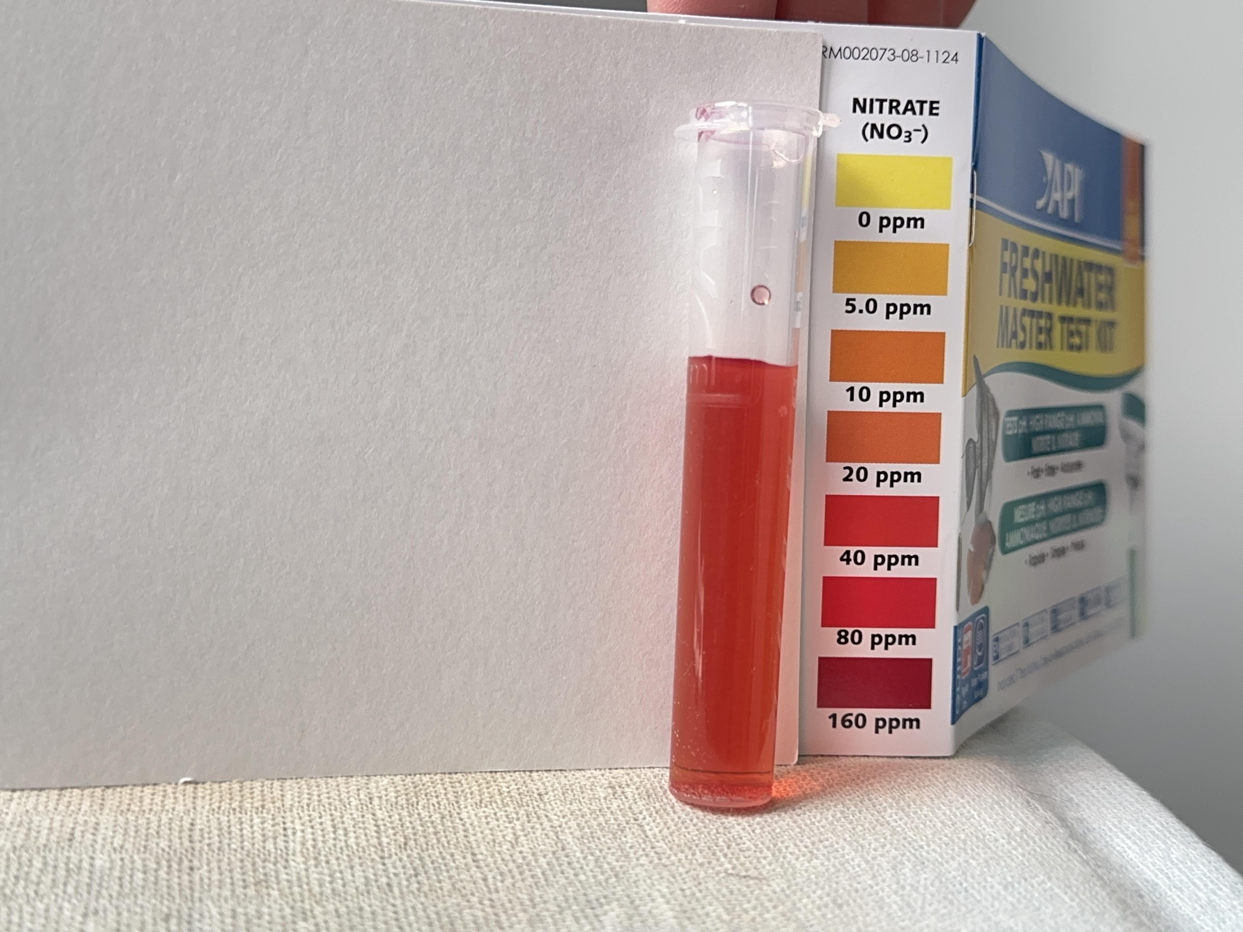 Nitrate – 40 ppm, or at least it looks like 40 to me from the photo attached