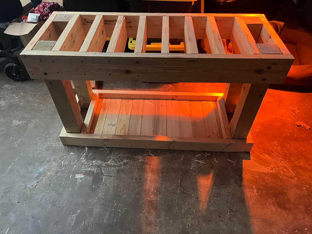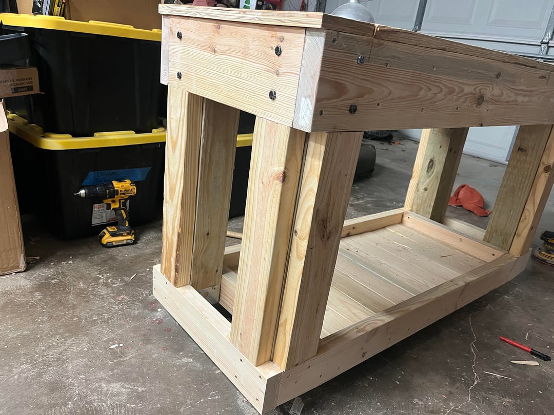 2. Your tanks weight is resting on the screws not the 4x4s you need to rebuild this. And unless this is a peninsula you usually want an open back for wiring and such
