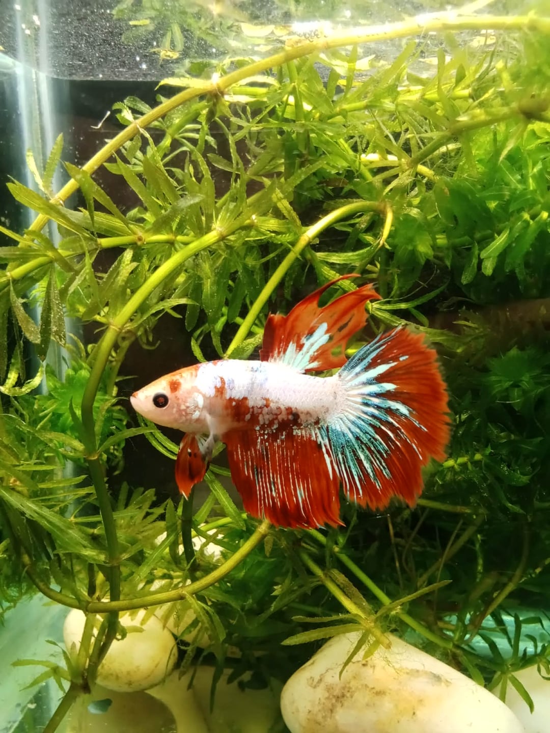 Clamped fins are one of the first stress signals, especially with the flowey males.