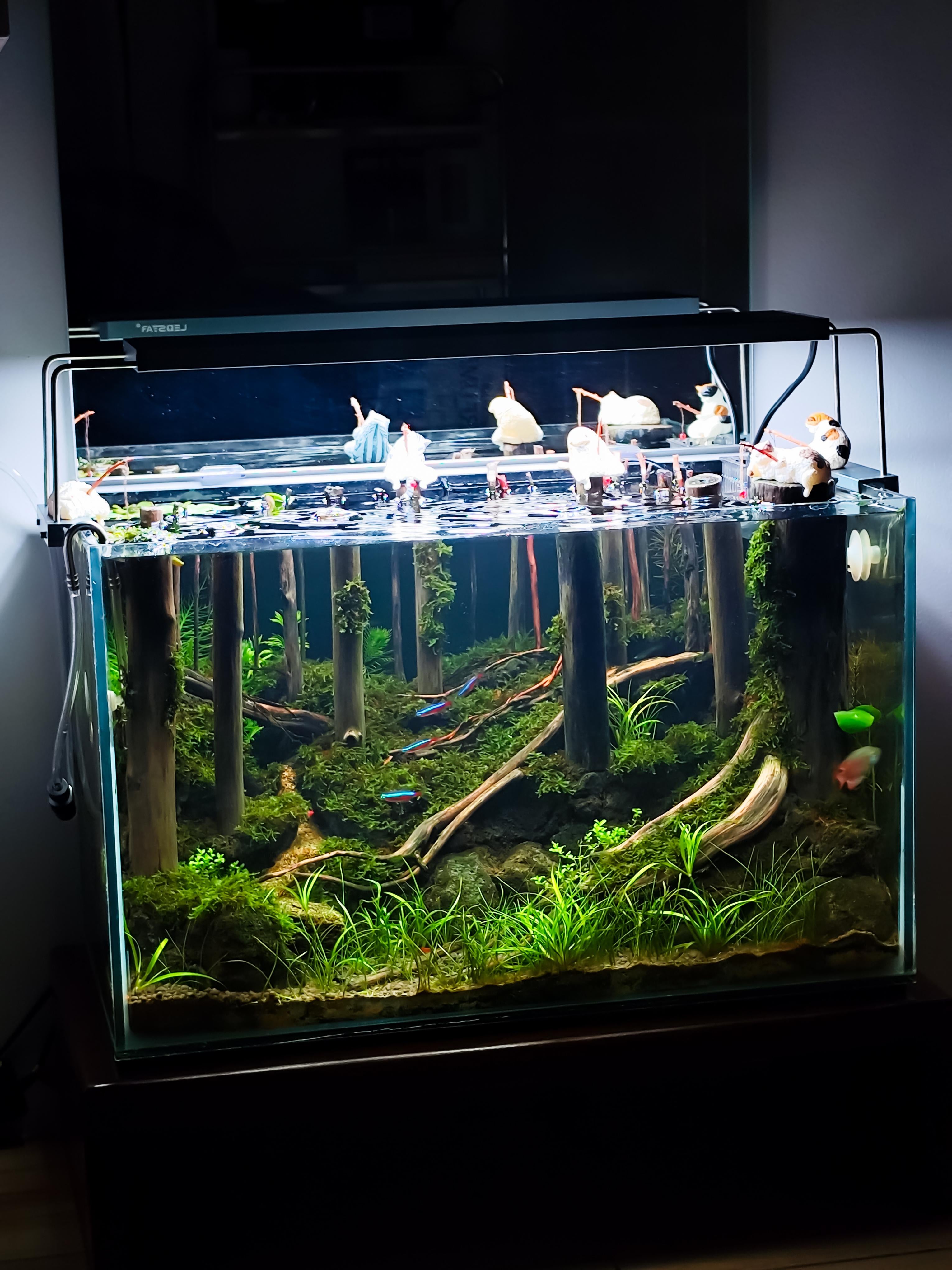 I see your aquarium is evolving clearly. It looks awesome and using a mirror as background is genius.