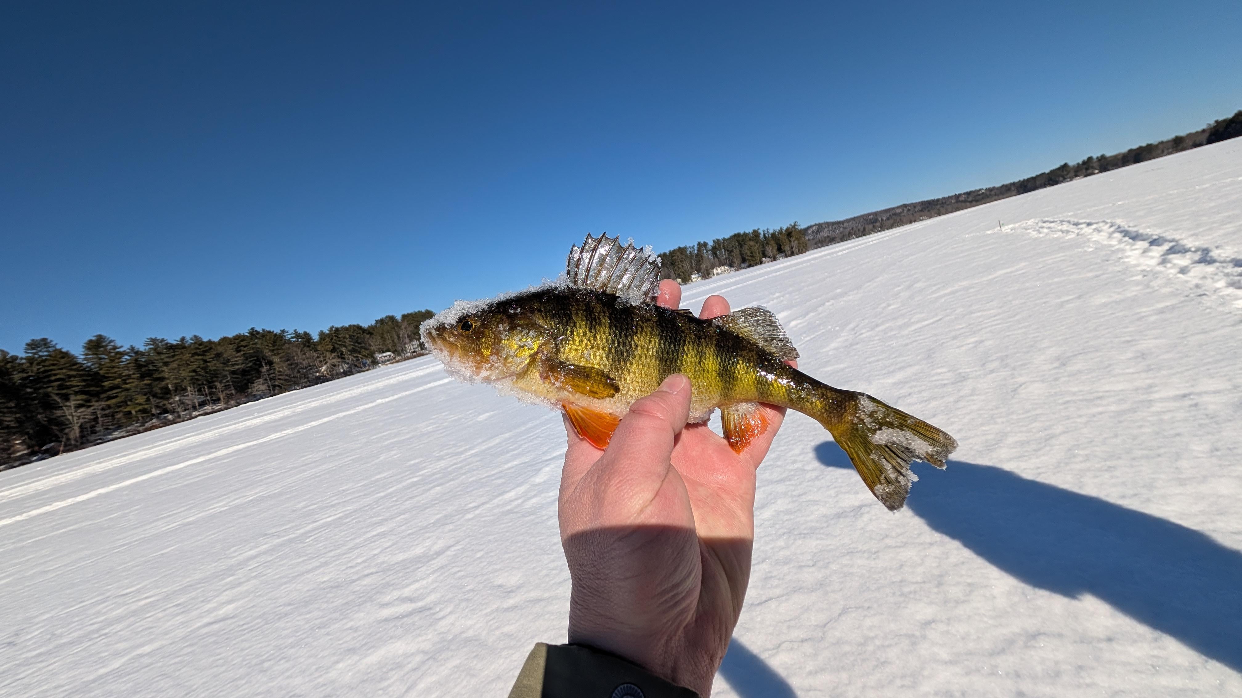 I got some ice fishing gear for Xmas and have been out trying to catch something since. But the bullet last week and bought a flasher. Game changer. Last few times I sat out on the ice for hours with "nothing" today, 20 minutes in, pulled this guy out. Then a few more of his friends as well.