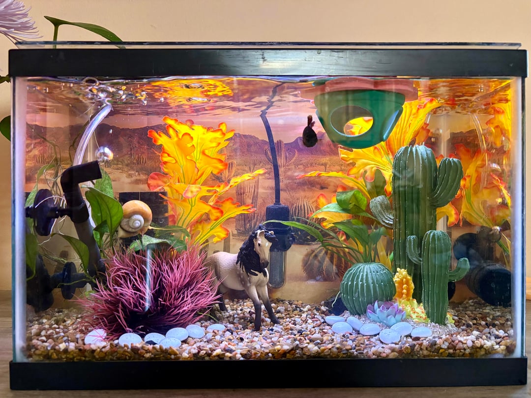 I used to be obsessive about having only natural looking aquariums with only live plants, but I would just get annoyed with upkeep, plants dying, tons of algae, and just didn’t like having aquariums anymore. When I downgraded to just one, with some hardy plants, and doing whatever fun theme I could think of every few months, I started enjoying the hobby again.