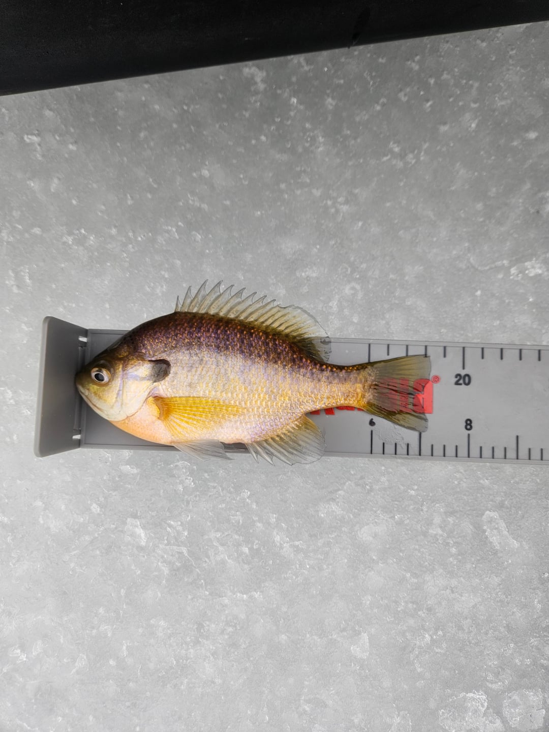 About a 13/24" large mouth and a decent bluegill. Still 7 – 9" of ice. Colyer Lake, Central PA. Posted by lordlyons90-7