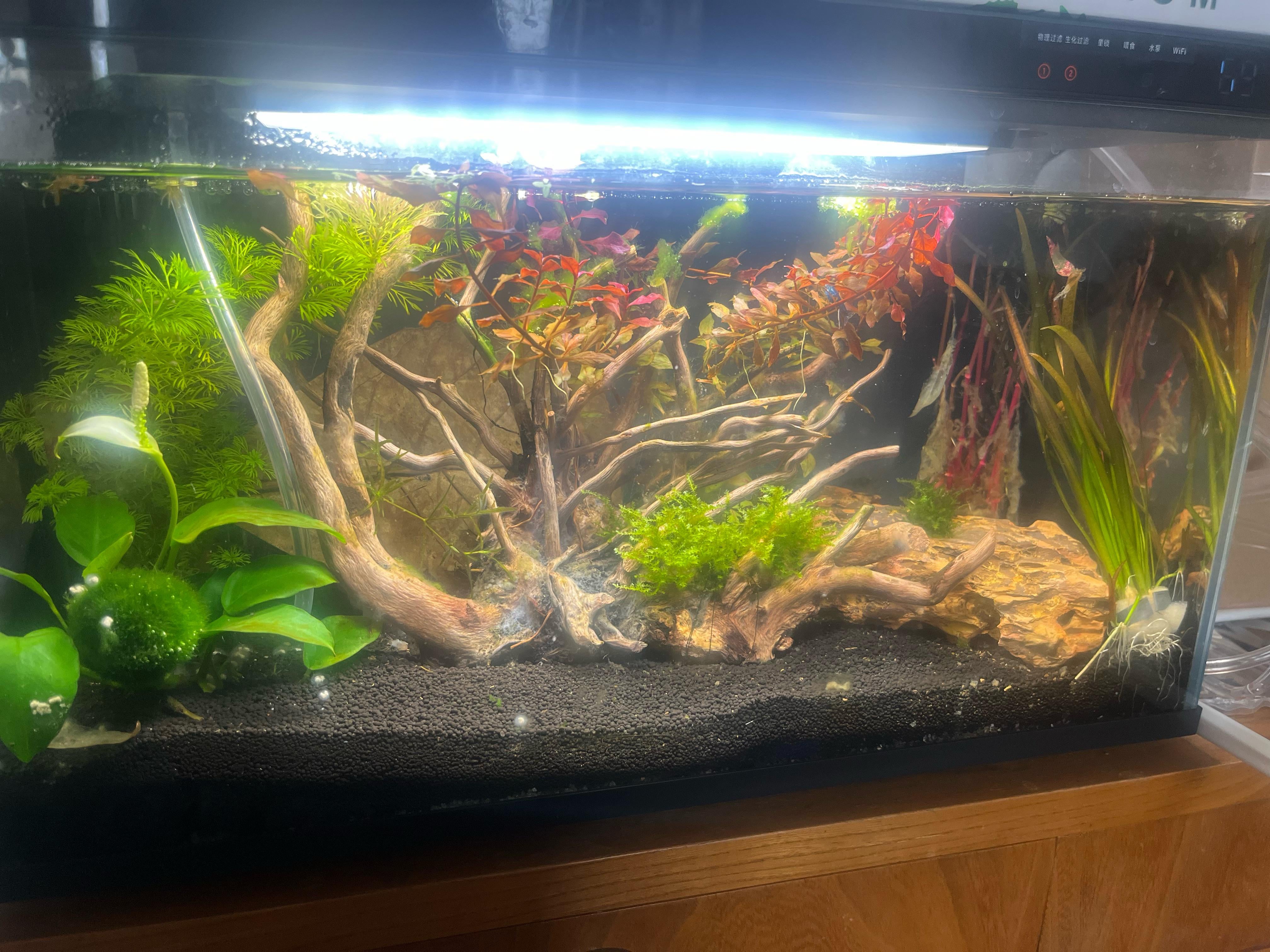 I have gotten my first Aquarium, set it up and left it for about 4 weeks. Now I just added neocaridina shrimps about a week ago. The water where I live is hard, I haven’t done any water readings so I don’t know other parameters. I have a Xiaomi smart tank, but I’m not using the smart features, not using th heater either and I’m not sure what this type of filter is called. Also have a small air stone in there