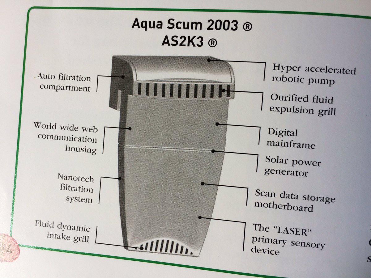 my old filter kept getting aquarium pebbles in the impeller. no clue how that happened, but it happened and the impeller burned out. I think it was also making my pacific cleaner shrimp sick and/or stressed out because he wasn’t doing his usual cleaning at the time either. So I got the aqua scum 2003 and it had the tank clean overnight! downside is it killed off that little clown fish I had rescued from the reef with its gimpy fin. Poor little guy ended up going down the drain and there’s quite a crazy separate story involved there but anyway my aqua scum lasted for a few days, but then it got a pebble stuck in it too? And now all my fish are gone from the counter where I left them in bags. So now not only do I need to go get another new filter, but I also have to replace my lost fish.