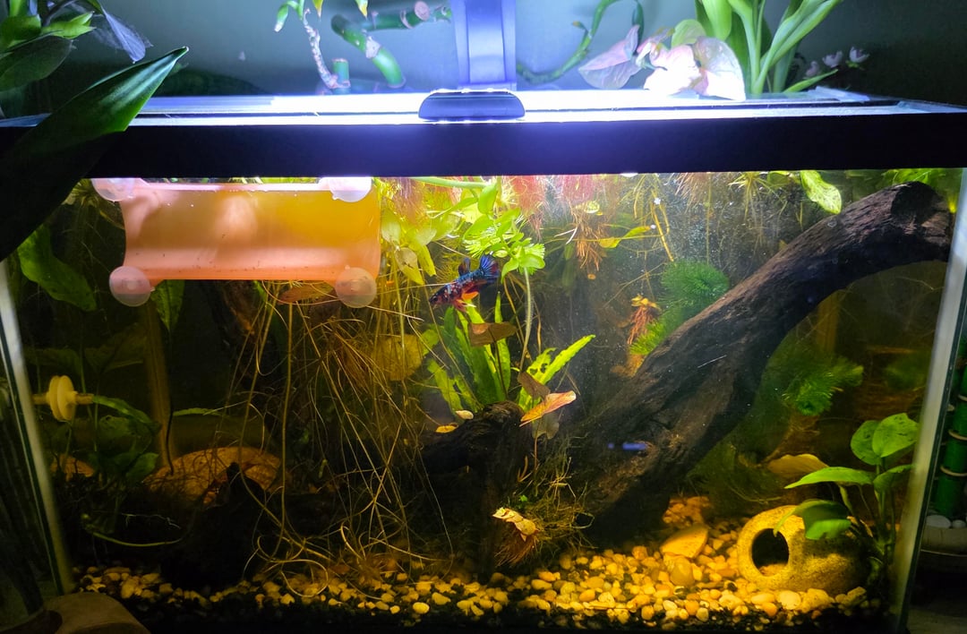 He was always a gorgeous guy, but now that he's matured he's gotten so much more stunning! My favorite lover boy who is constantly building bubble mansions and patrolling his 10 gallon kingdom. Such a social dude who always has to know what we're up to. (His tank is in our dining room/living area so he has ample opportunity to be nosy.)