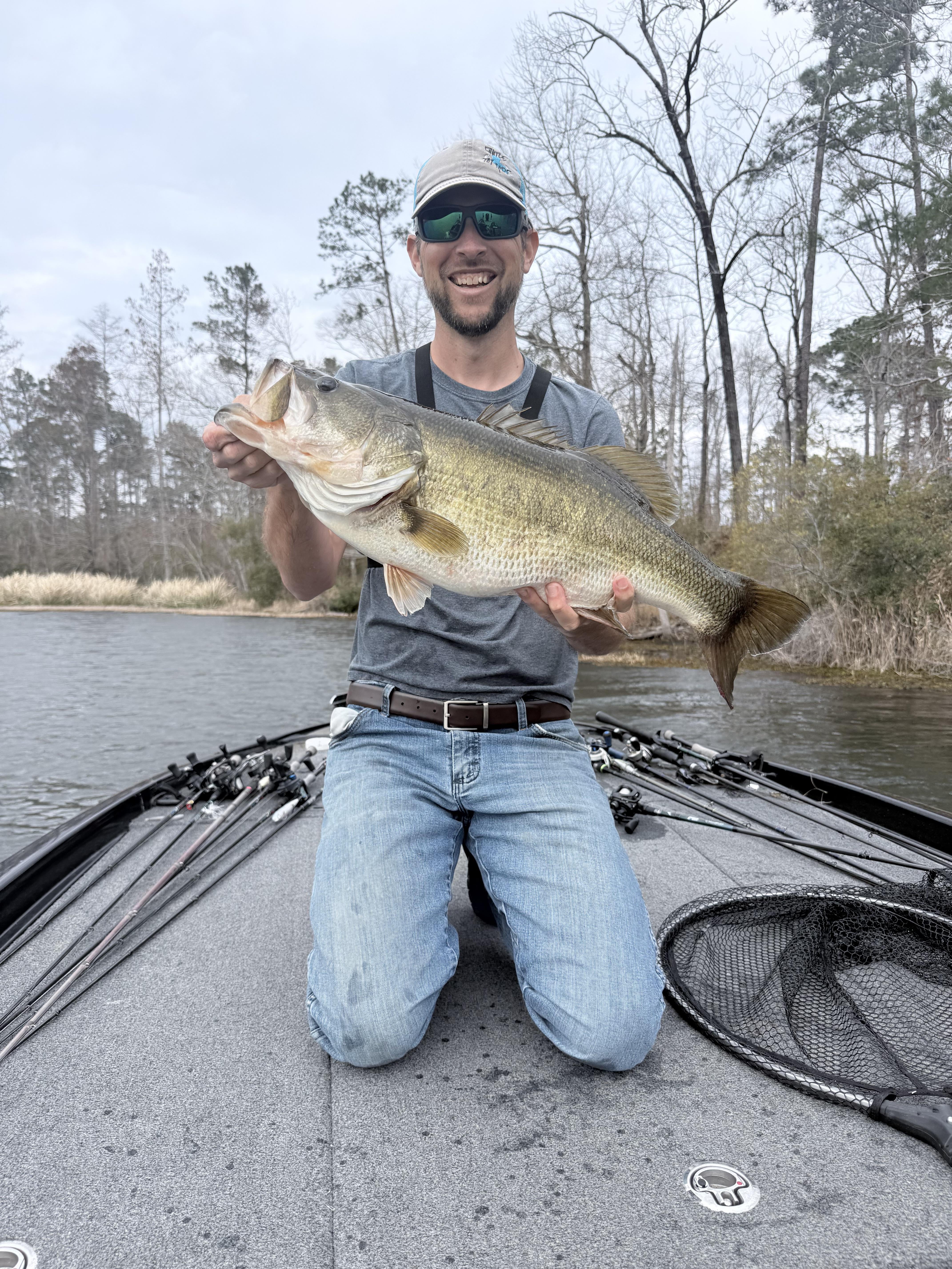 I brought my fiancé eat out at Zeas and in return she blessed me with her expert level netting skills.She netted an 8lber earlier in the day and then later netted this absolute beast of a 10lber. I truly thought I had just another 2-3lber as I was catching those regularly throughout the day. I knew I was around a stump which could make a 2lber feel huge, right? So I ran to the back of the boat to get my line around the stump and this fish said that ain’t happening and started to really pull. At that point I’m thinking WTF is it a catfish or something? Then it shows itself and I’m like HOLY HELL! I knew it was large but was only thinking a 6-7lber… I get it around the stump and then it snags itself in a fallen branch which I then bring up to the surface with the fish! then the fish comes out of the branch and rips drag under the boat. I then get it back to the surface right to my fiancé, who nets it.