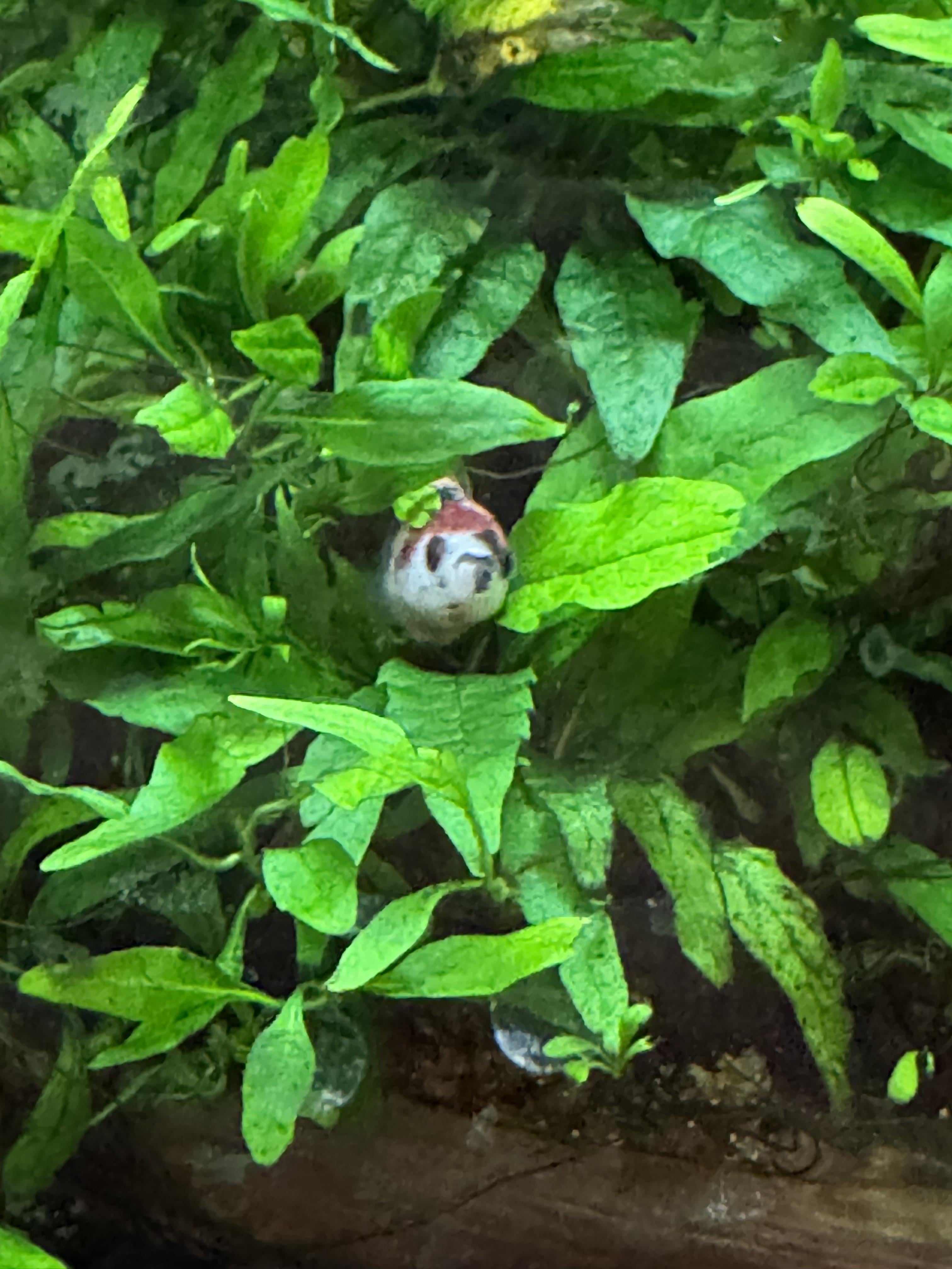 Decided to feed the others and BOO she popped out of the Java fern/driftwood I have in there. so cute